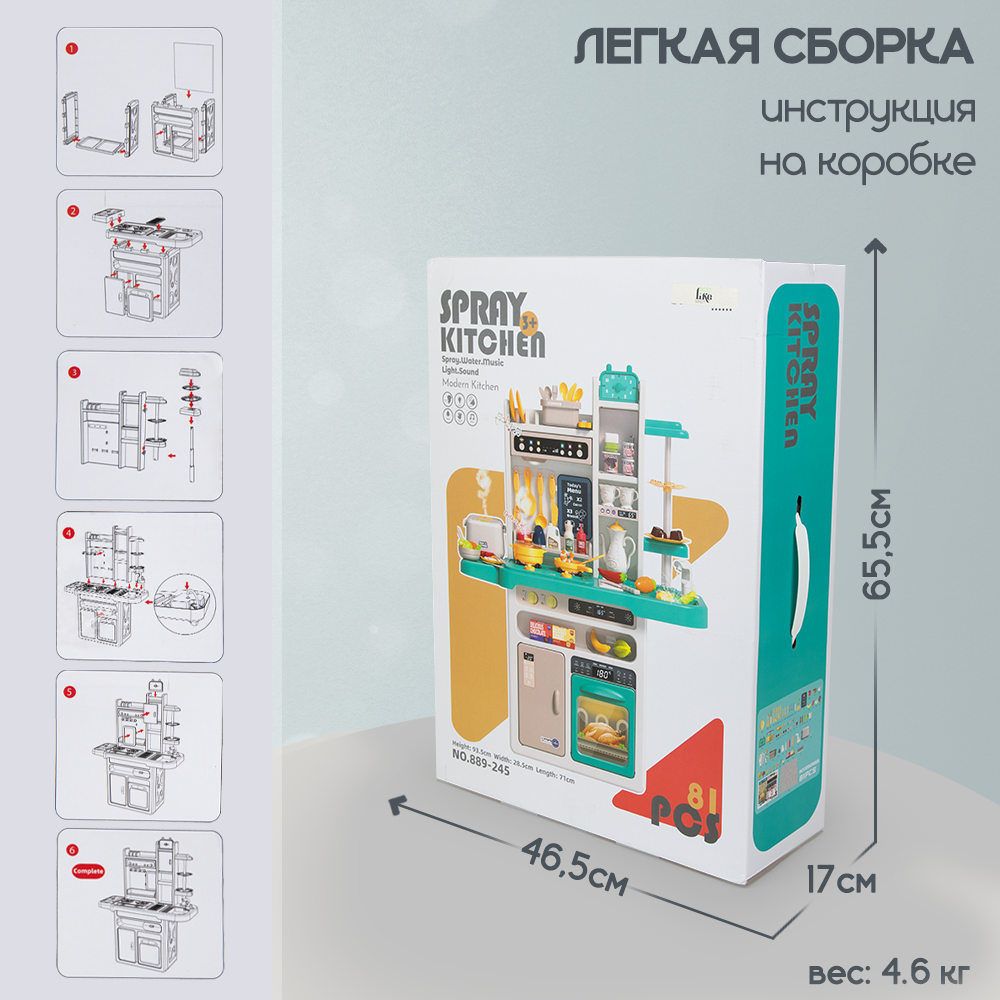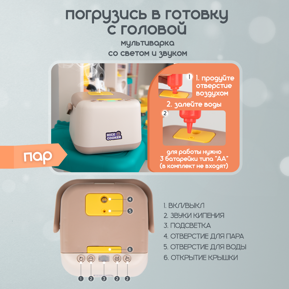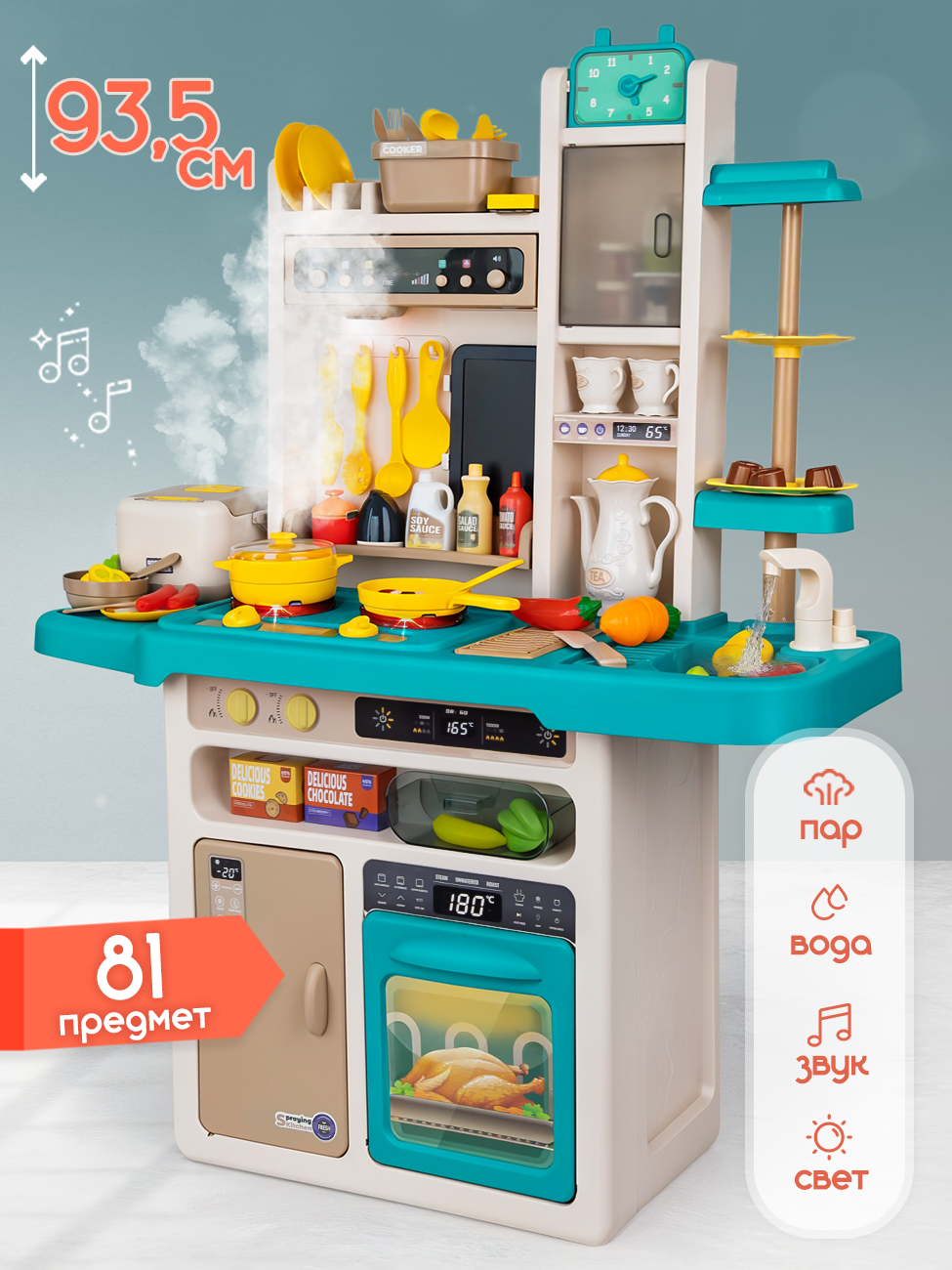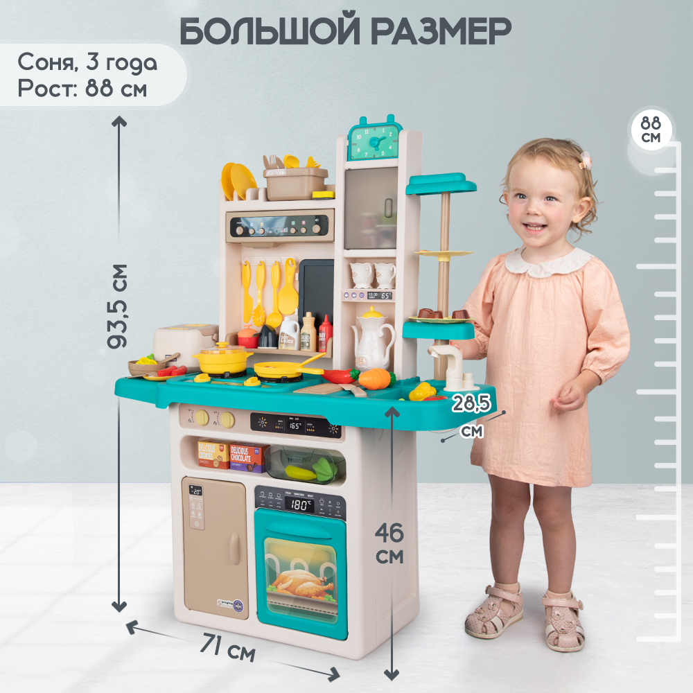 Большая кухня детская игровая с паром, водой, светом, звуком, 93 см интересное: