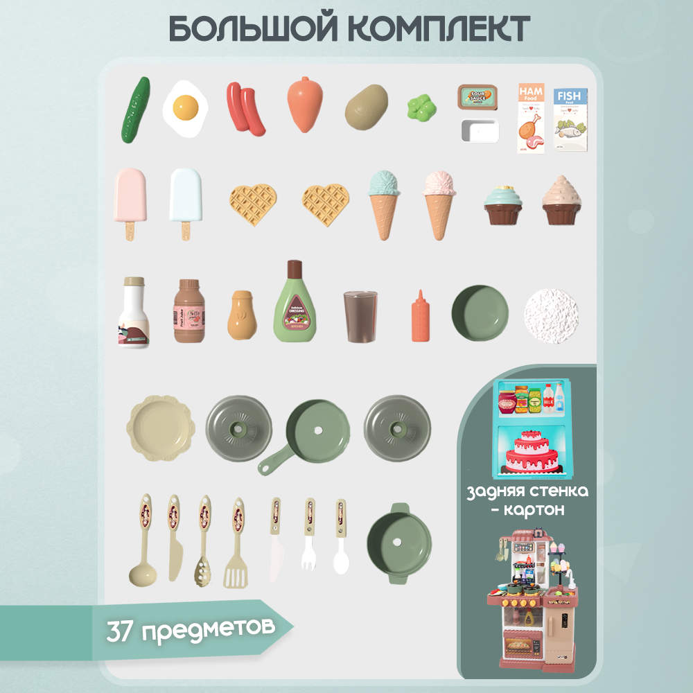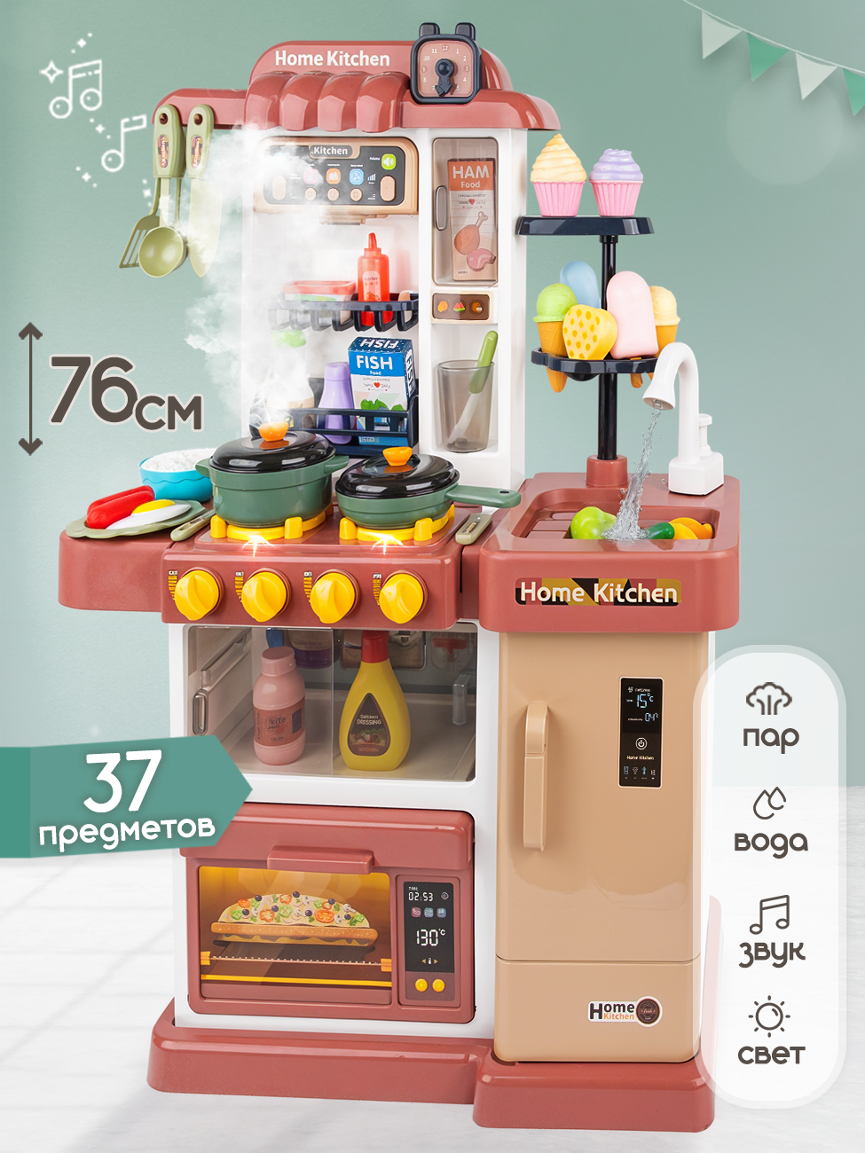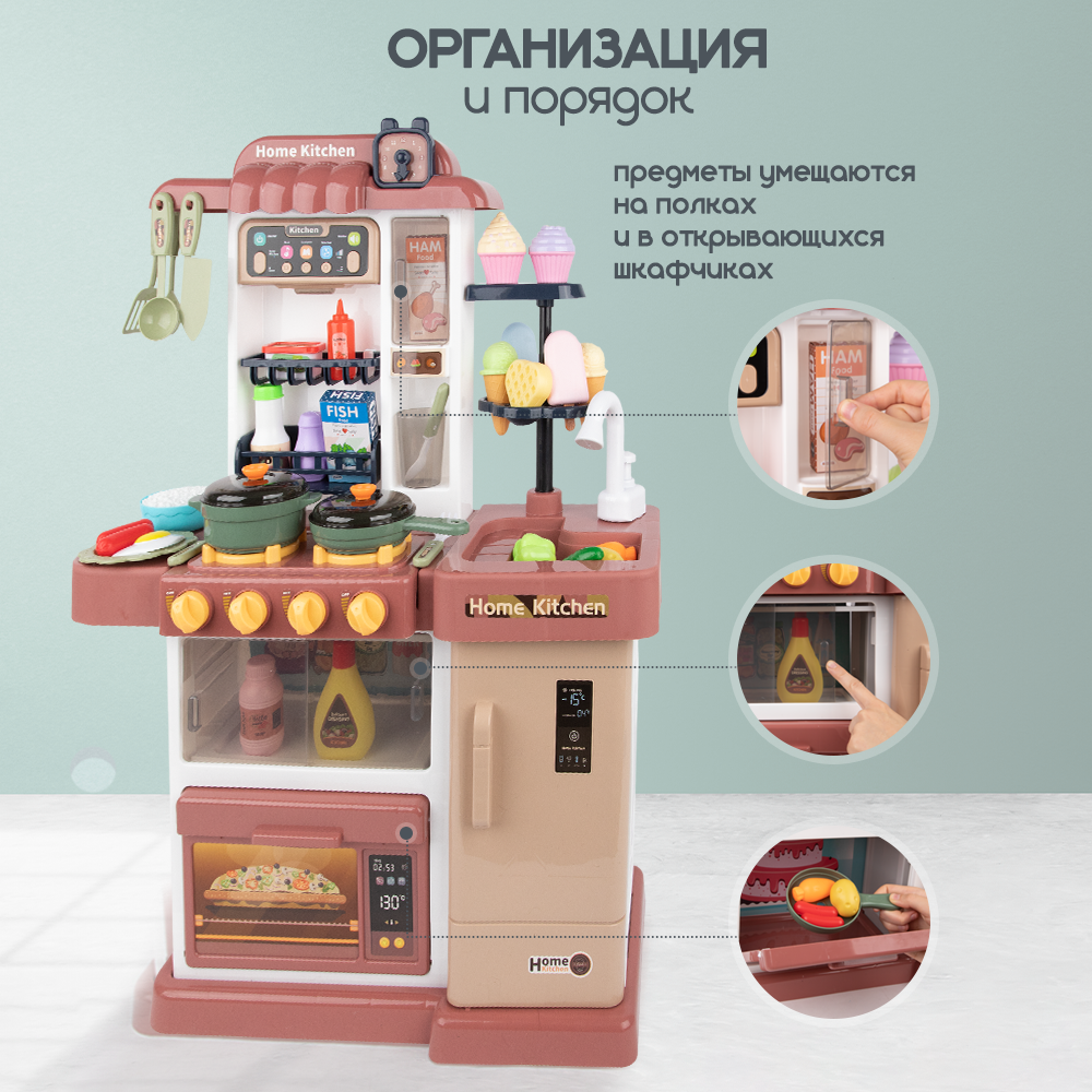 Кухня детская игровая BL 80 см с водой и паром, свет, звук, 63 предмета