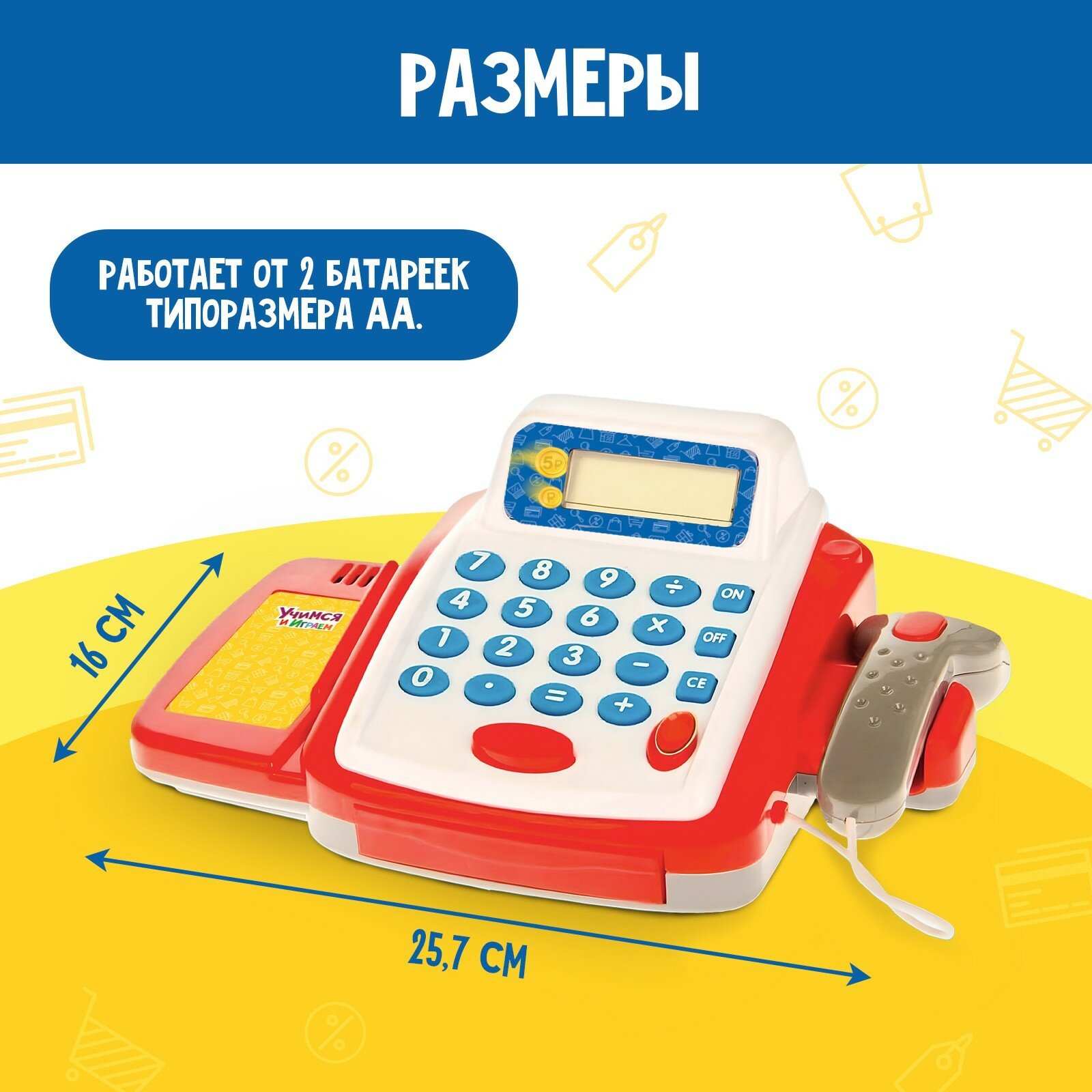 Купить Обучающая касса-калькулятор Учимся и играем, игрушечная, с аксессуарами, световые и звуковые эффекты