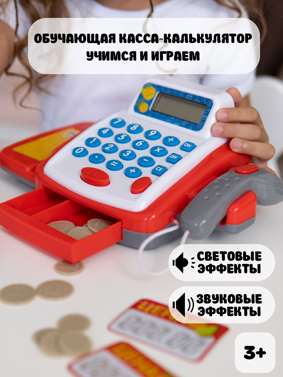 Обучающая касса-калькулятор Учимся и играем, игрушечная, с аксессуарами, световые и звуковые эффекты интересное: