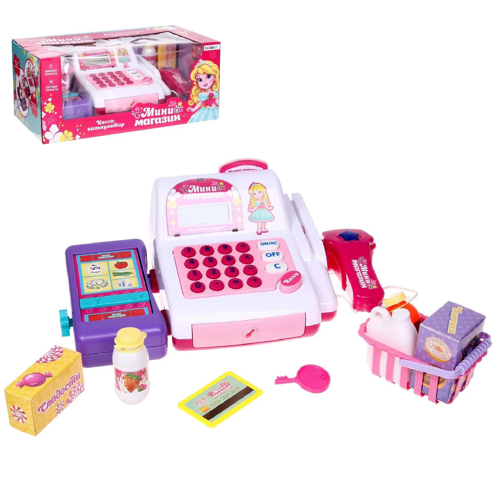 Купить ZABIAKA Касса-калькулятор "Мини магазин" с аксессуарами, розовый, свет, звук №SL-0775