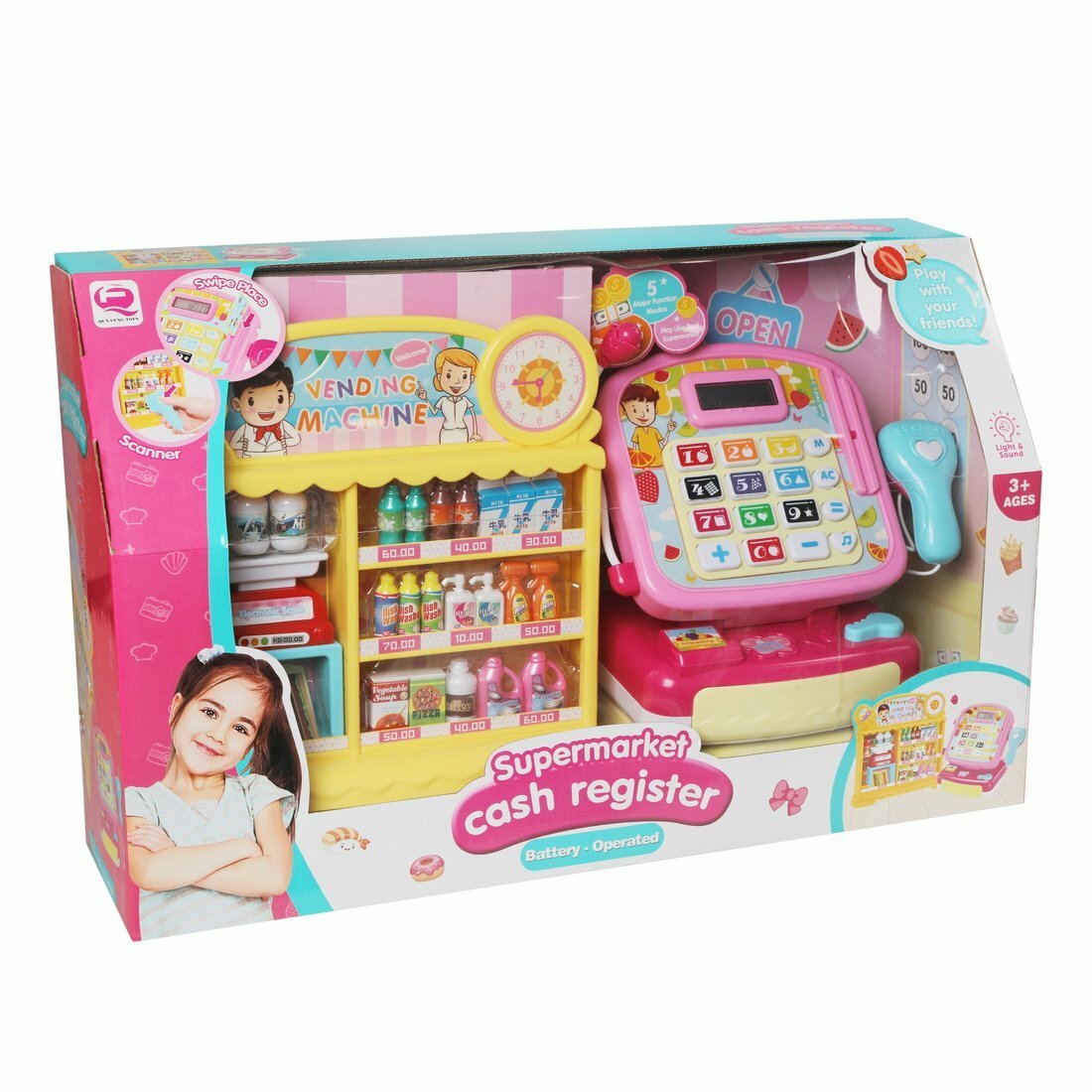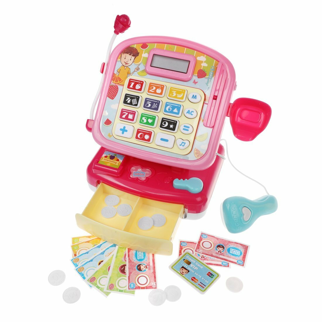| В комплекте | деньги, калькулятор, кассовый аппарат, продукты, сканер |
