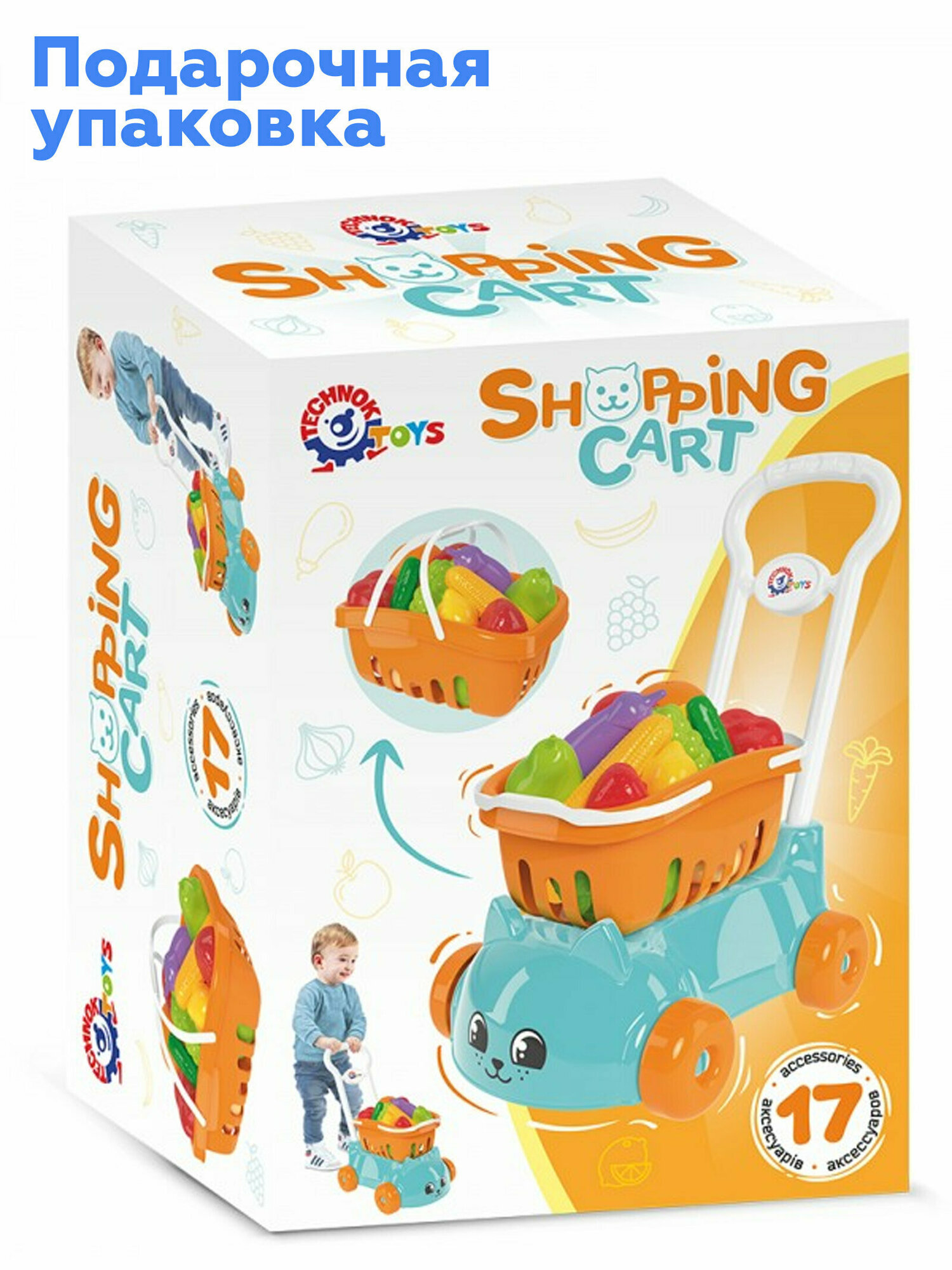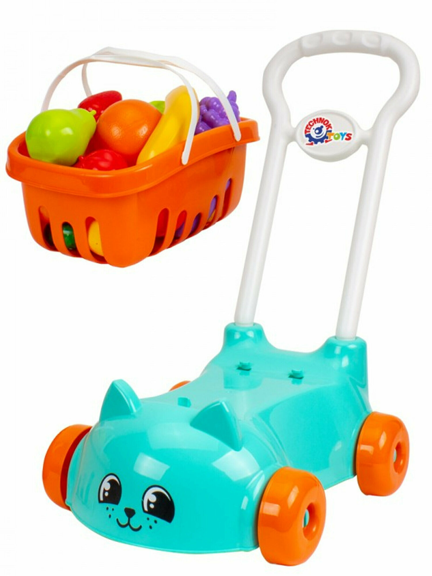 Тележка для супермаркета Technok Toys с набором овощей и фруктов в корзинке ц. голубой интересное:
