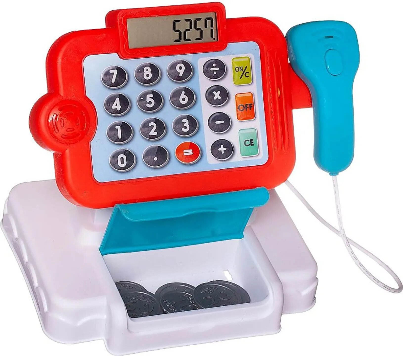 | Комплектация | кассовый аппарат со сканером / банковская карта – 2 шт. / комплект игрушечных денег |