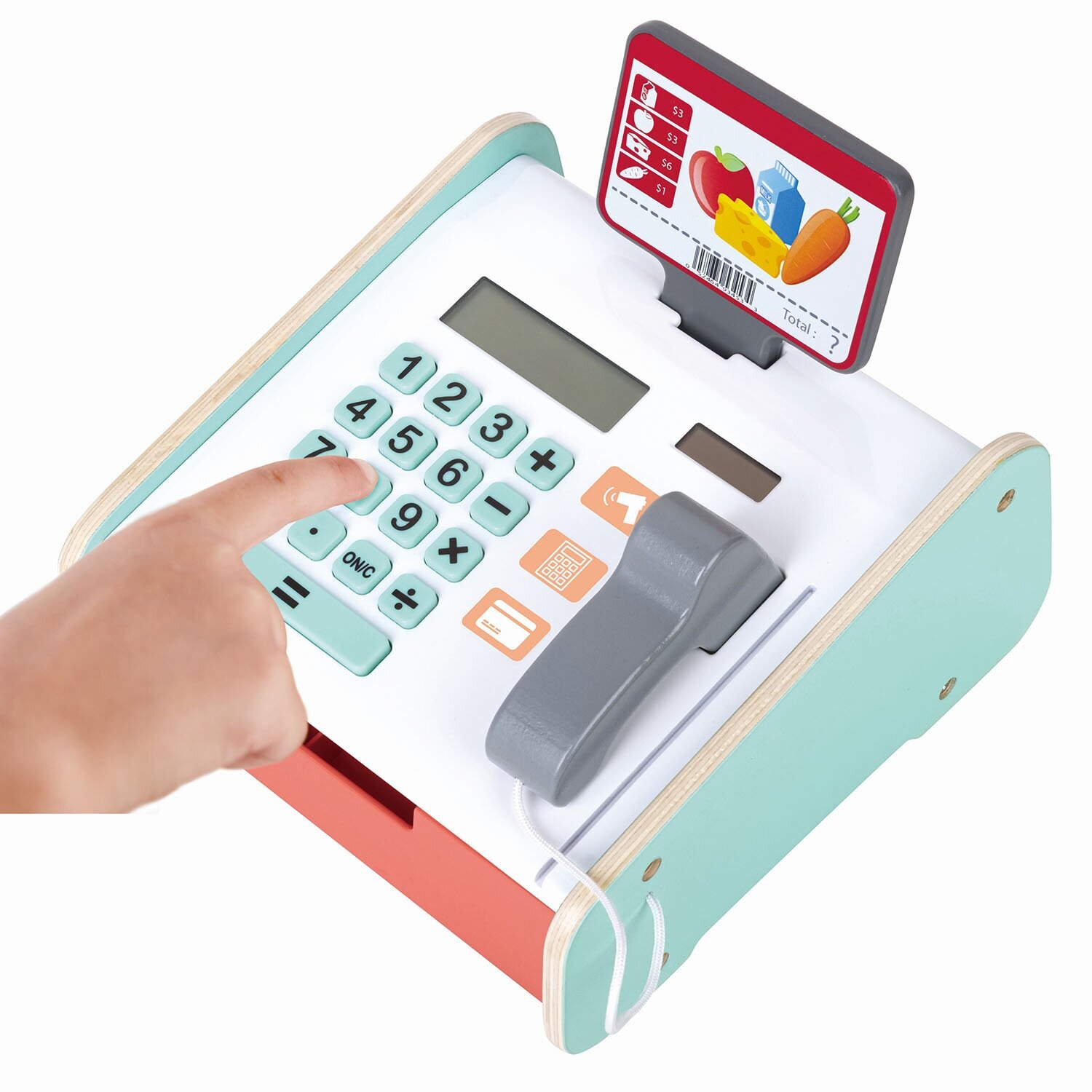 Купить Игрушка детская деревянная касса Hape с бумажными деньгами, монетами, пластиковой картой и сканером товаров E3200_HP