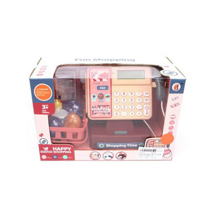 | Комплектация | касса с настоящим калькулятором / сканером и открывающимся отсеком для денег / платёжная карта / 6 купюр / корзина / муляжи продуктов и напитков: баклажан / курочка / кукуруза / виноград / баночка молока |