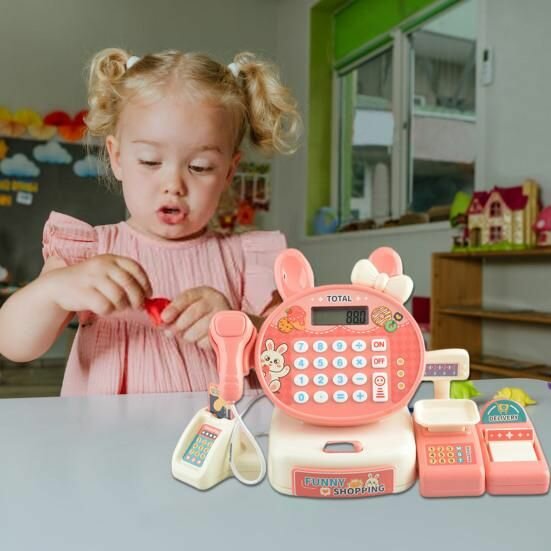 Купить Касса детская, магазин с игрушечными деньгами, игровой набор супермаркет для девочек и мальчиков, 29 предметов