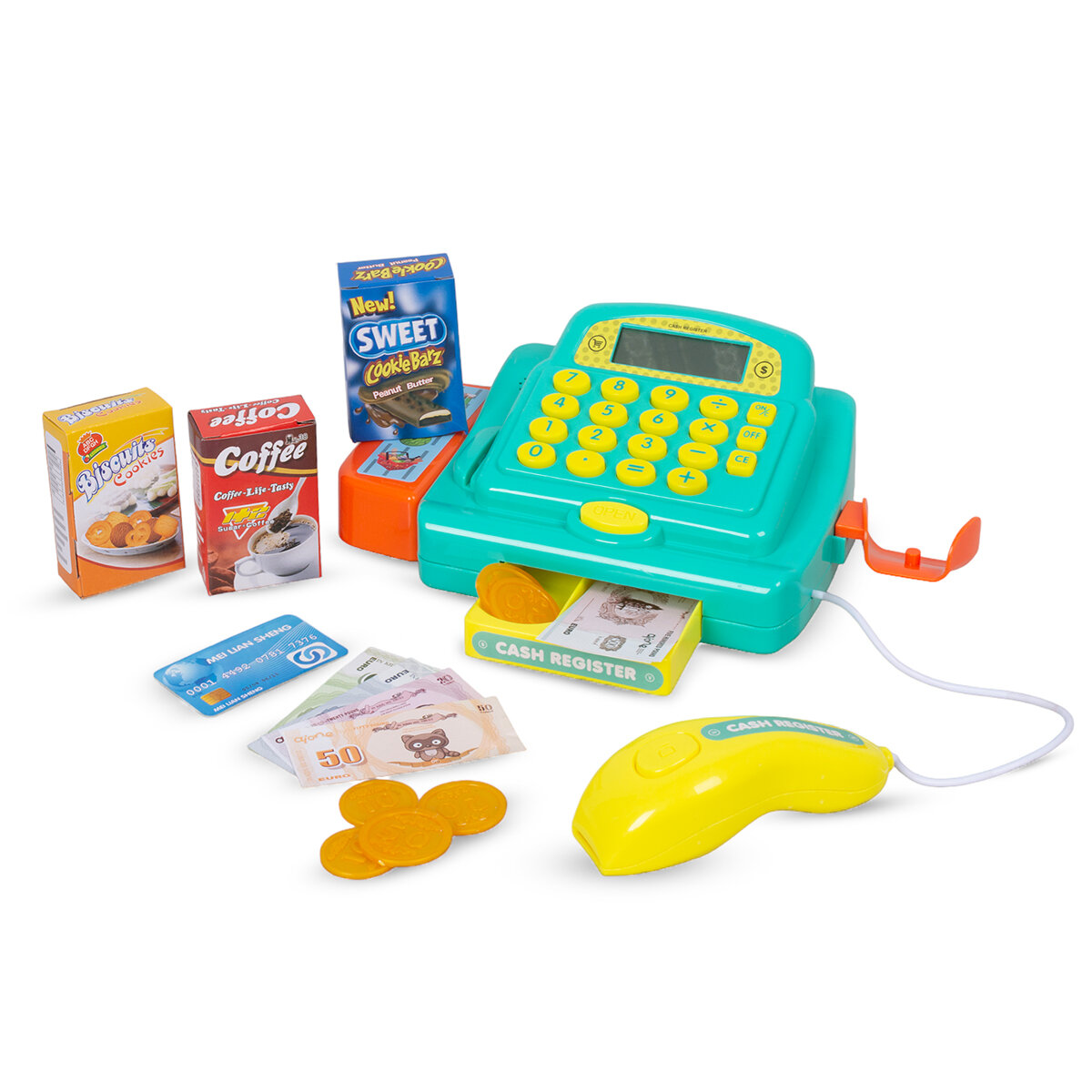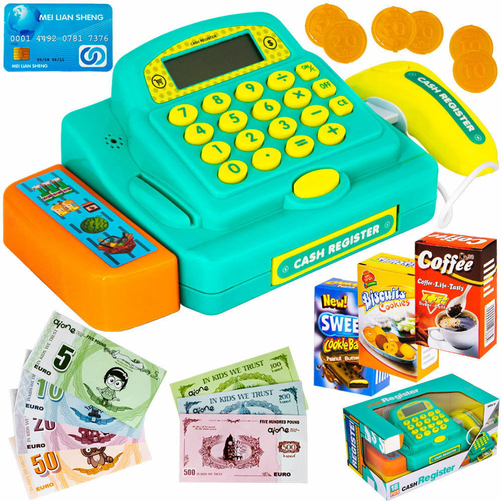 | В комплекте | банковская карта, деньги, кассовый аппарат, продукты, сканер |