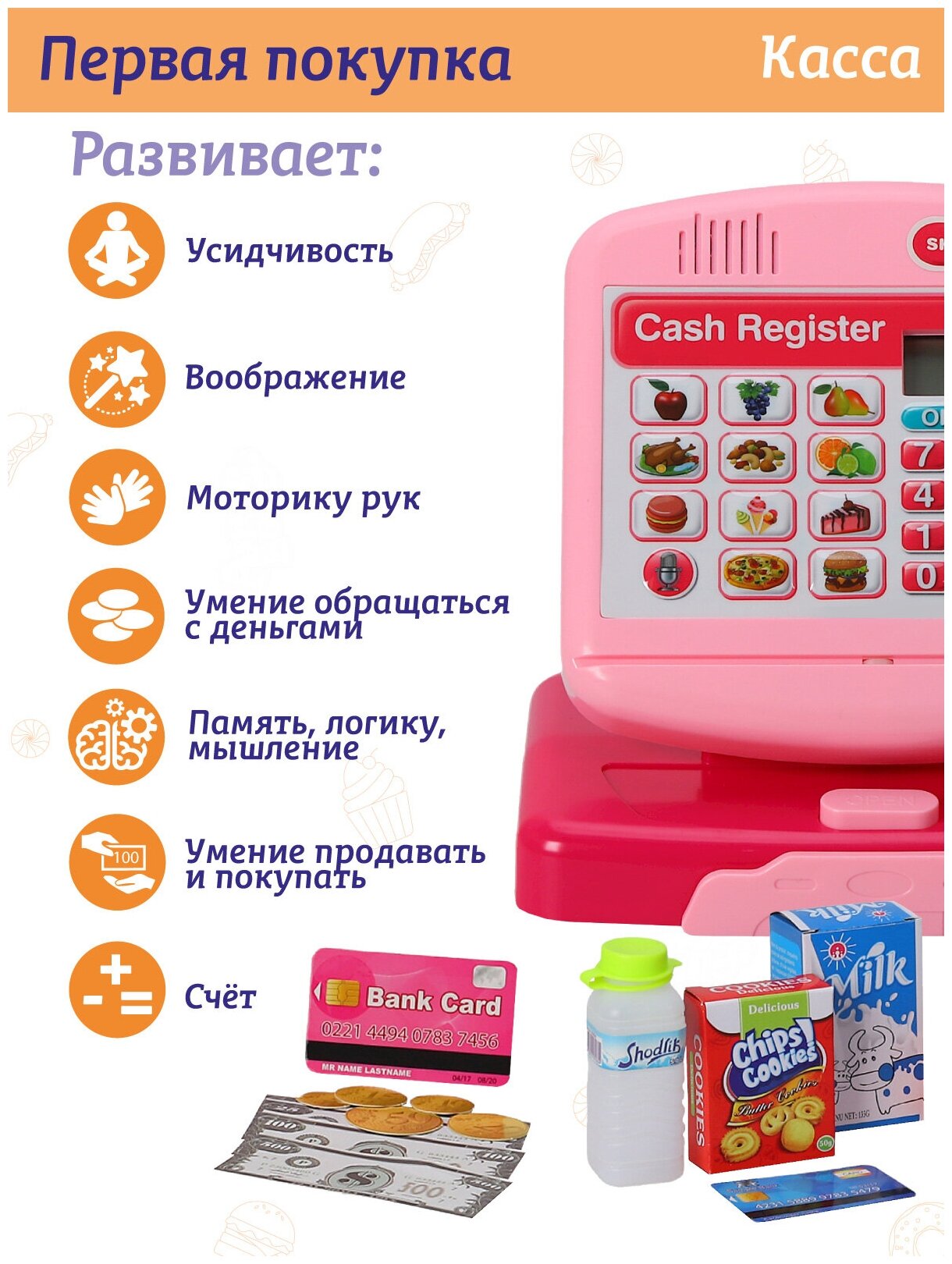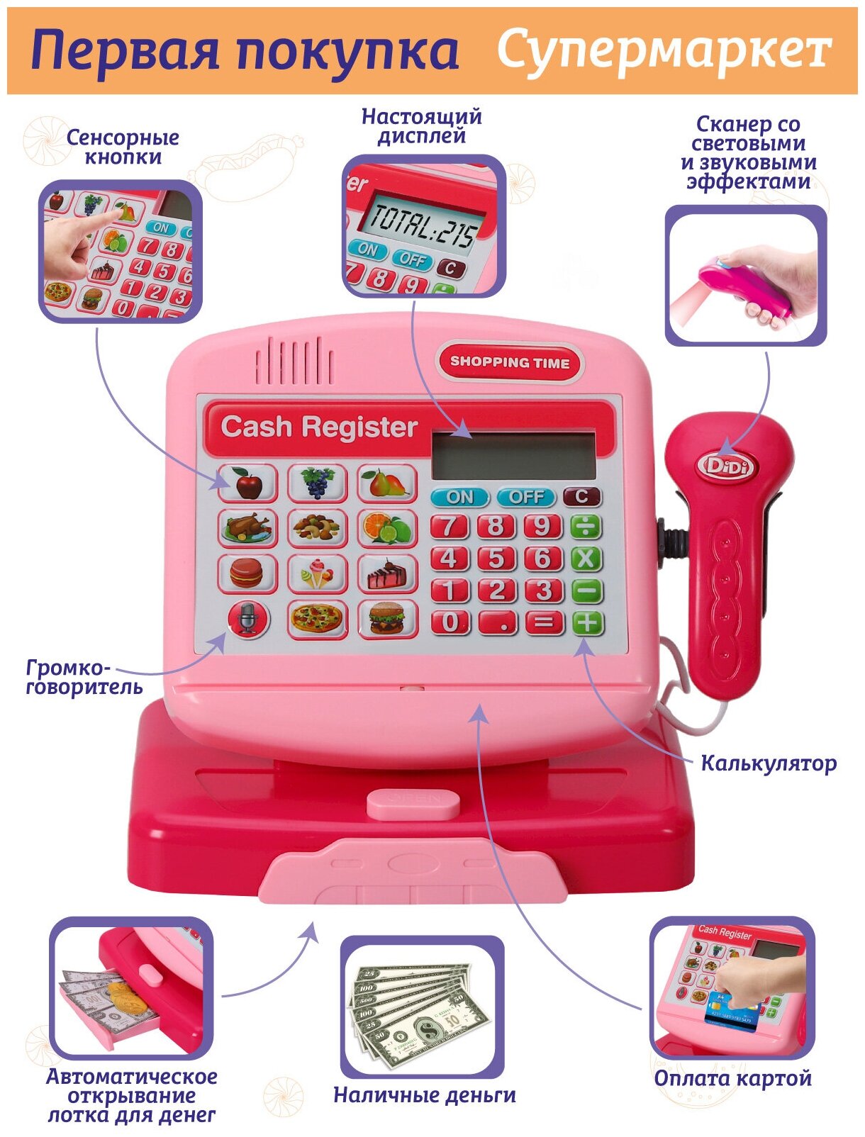Ниже Вы можете прочитать отзывы на Игровой набор детский Касса, магазин, касса с калькулятором, сканер, развивающая, обучающая игрушка, свет, звук, розовый, JB0208183, ознакомится с подробными характеристиками, посмотреть интересные обзоры и фотографии на Игровой набор детский Касса, магазин, касса с калькулятором, сканер, развивающая, обучающая игрушка, свет, звук, розовый, JB0208183.