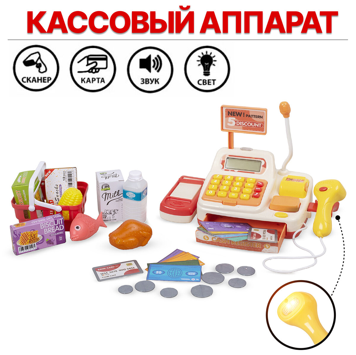 Купить Игровой набор Касса со звуковыми и световыми эффектами и с аксессуарами (8103)