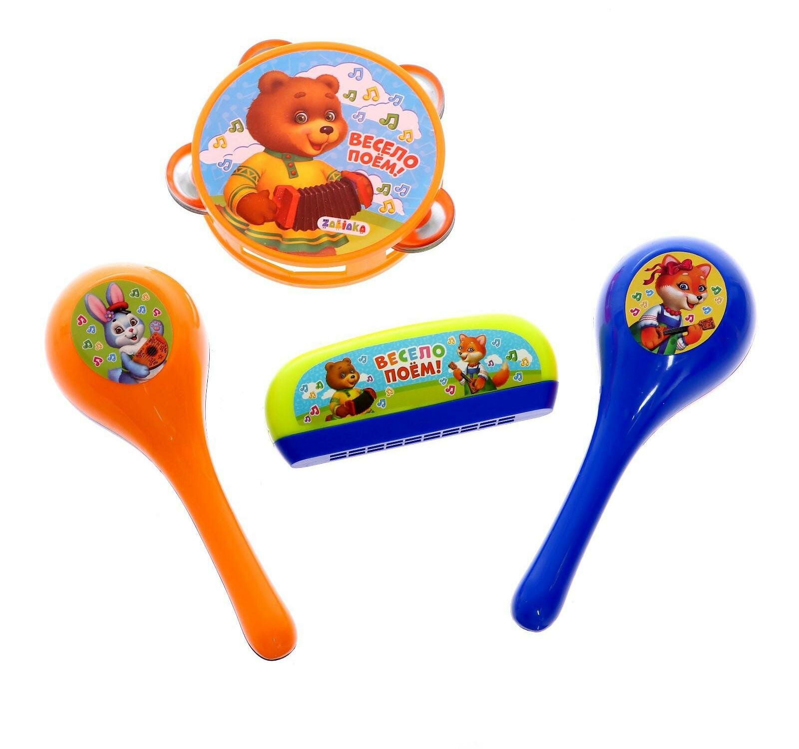 Музыкальные инструменты "Весело поём!" для детей, 4 предмета, цвета МИКС, ZABIAKA
