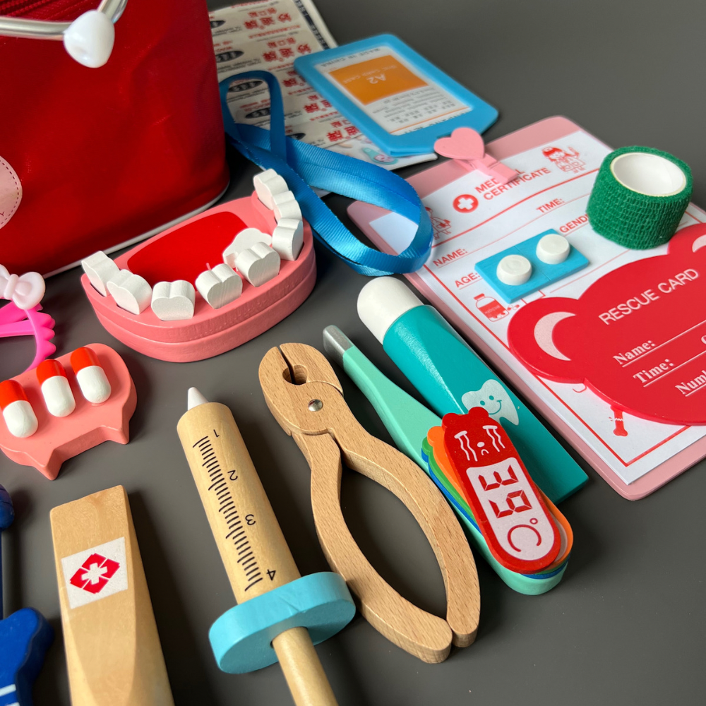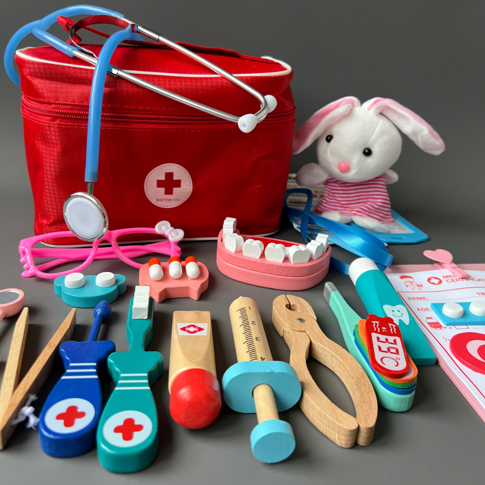 Купить Сюжетно-ролевой деревянный набор доктора в сумке с мягкой игрушкой "Врач скорой"