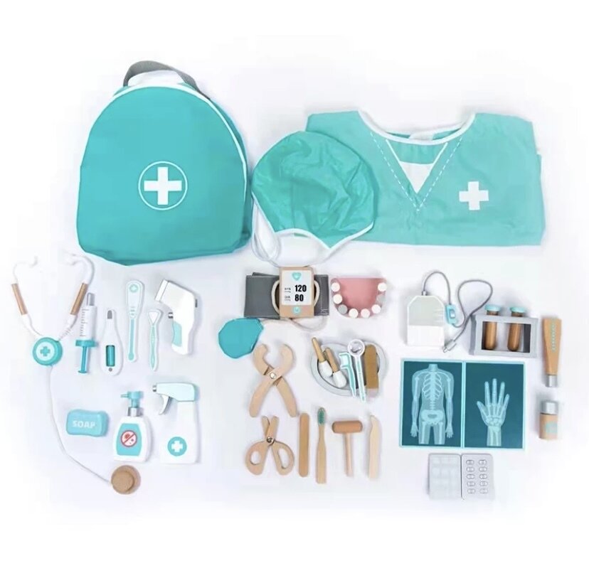Купить Большой деревянный набор "Доктора" в сумочке (с медицинским халатом и колпаком) 36 деталей