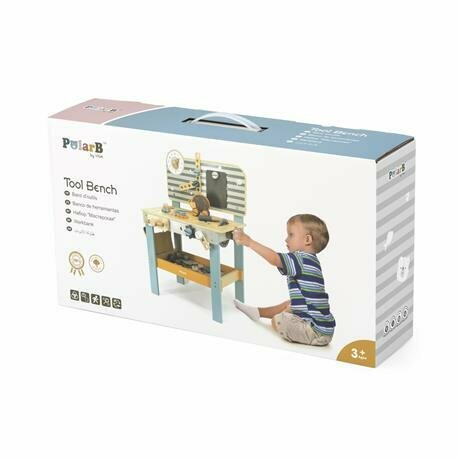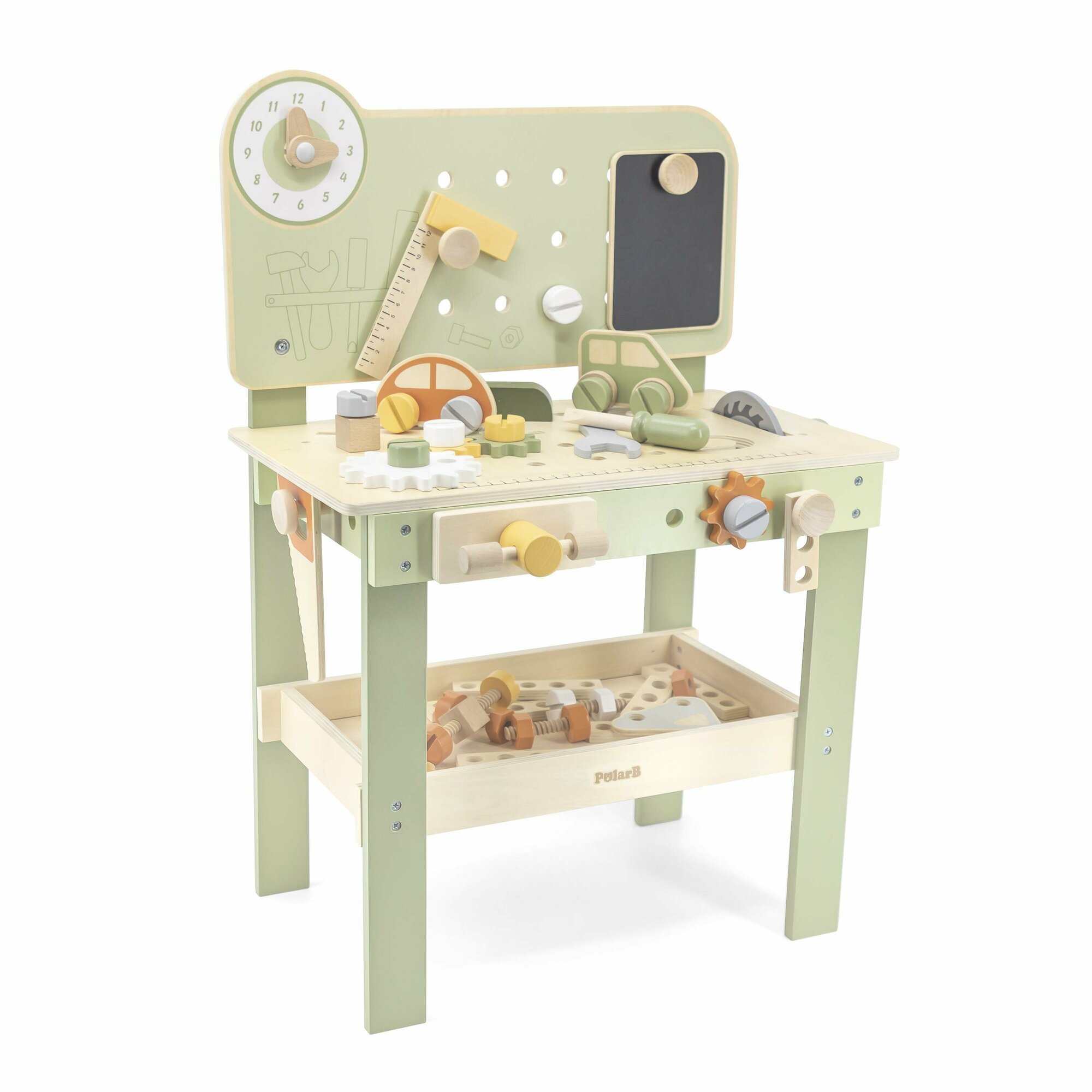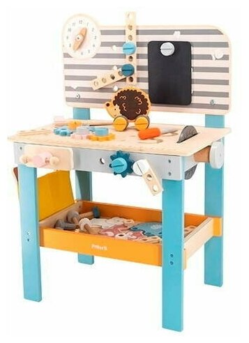 Деревянный верстак с инструментами Viga Toys PolarB 44065 с часами и доской для рисования вига