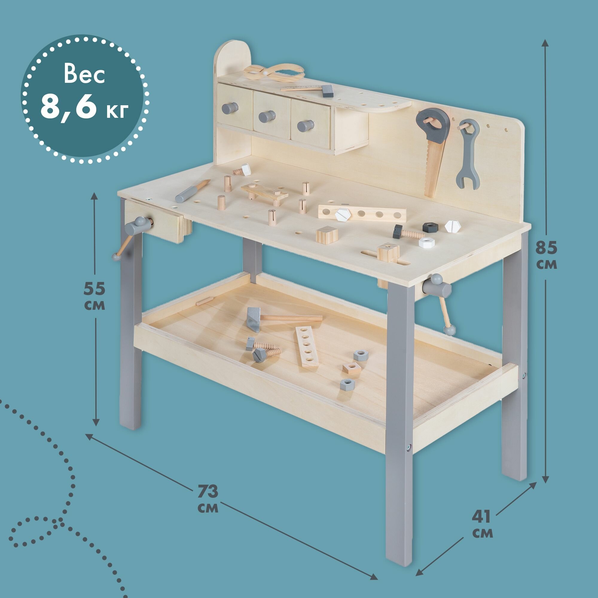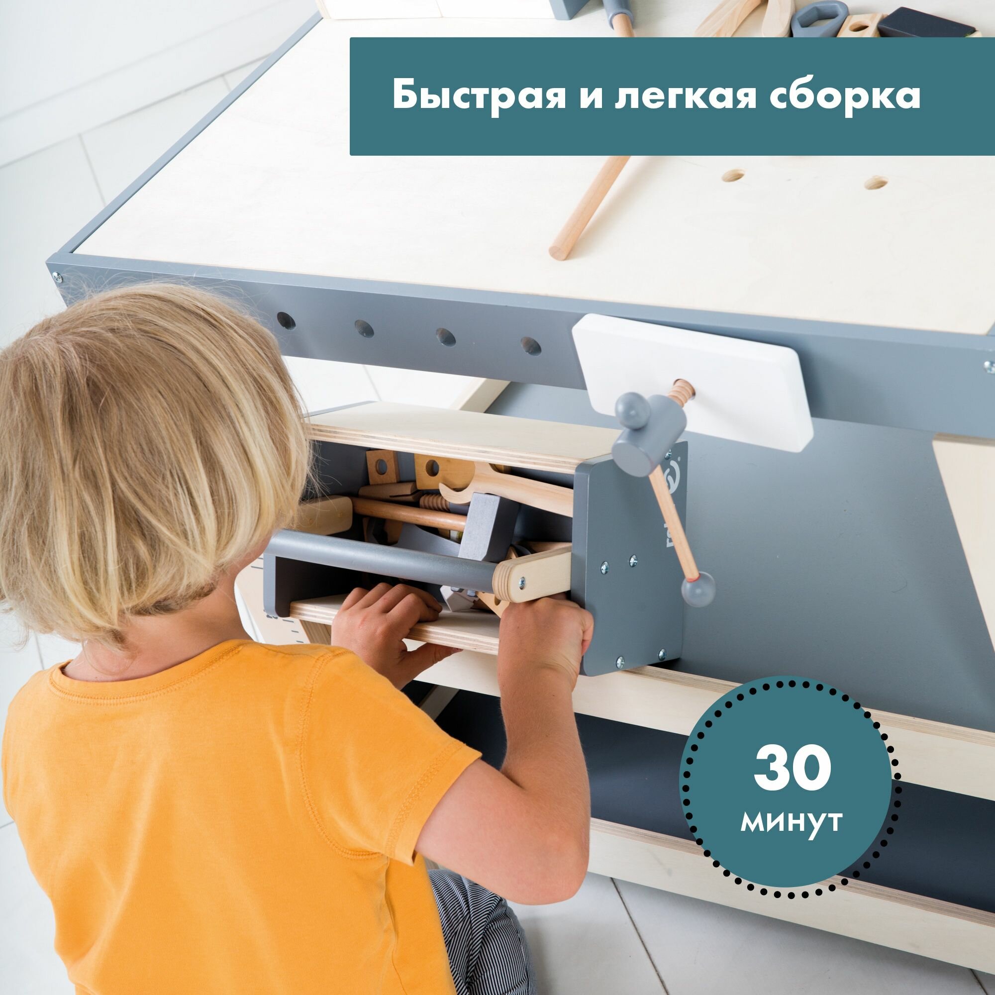 Детская мастерская с инструментами Roba, деревянный верстак, натуральный/серый интересное:
