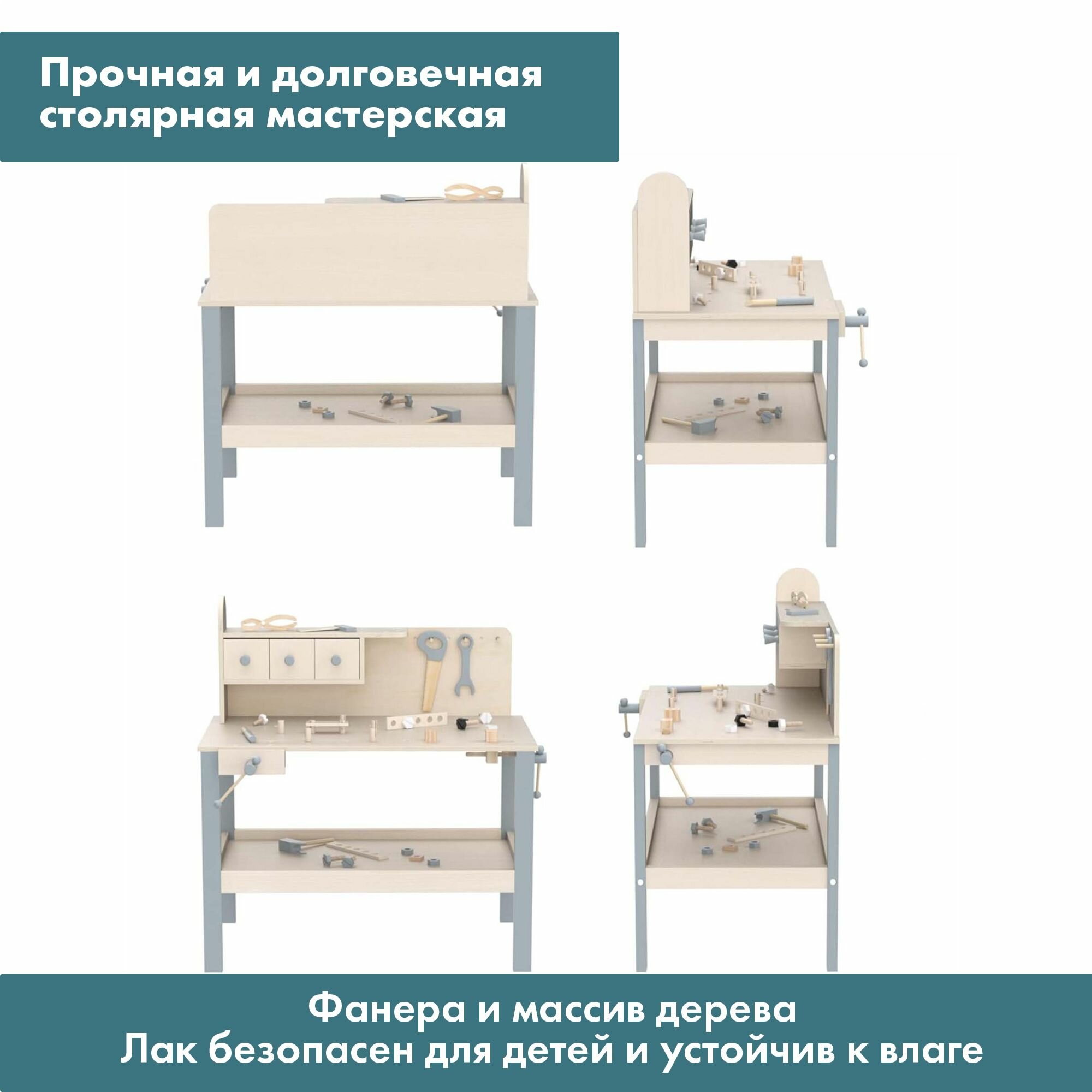 Купить Детская мастерская с инструментами Roba, деревянный верстак, натуральный/серый