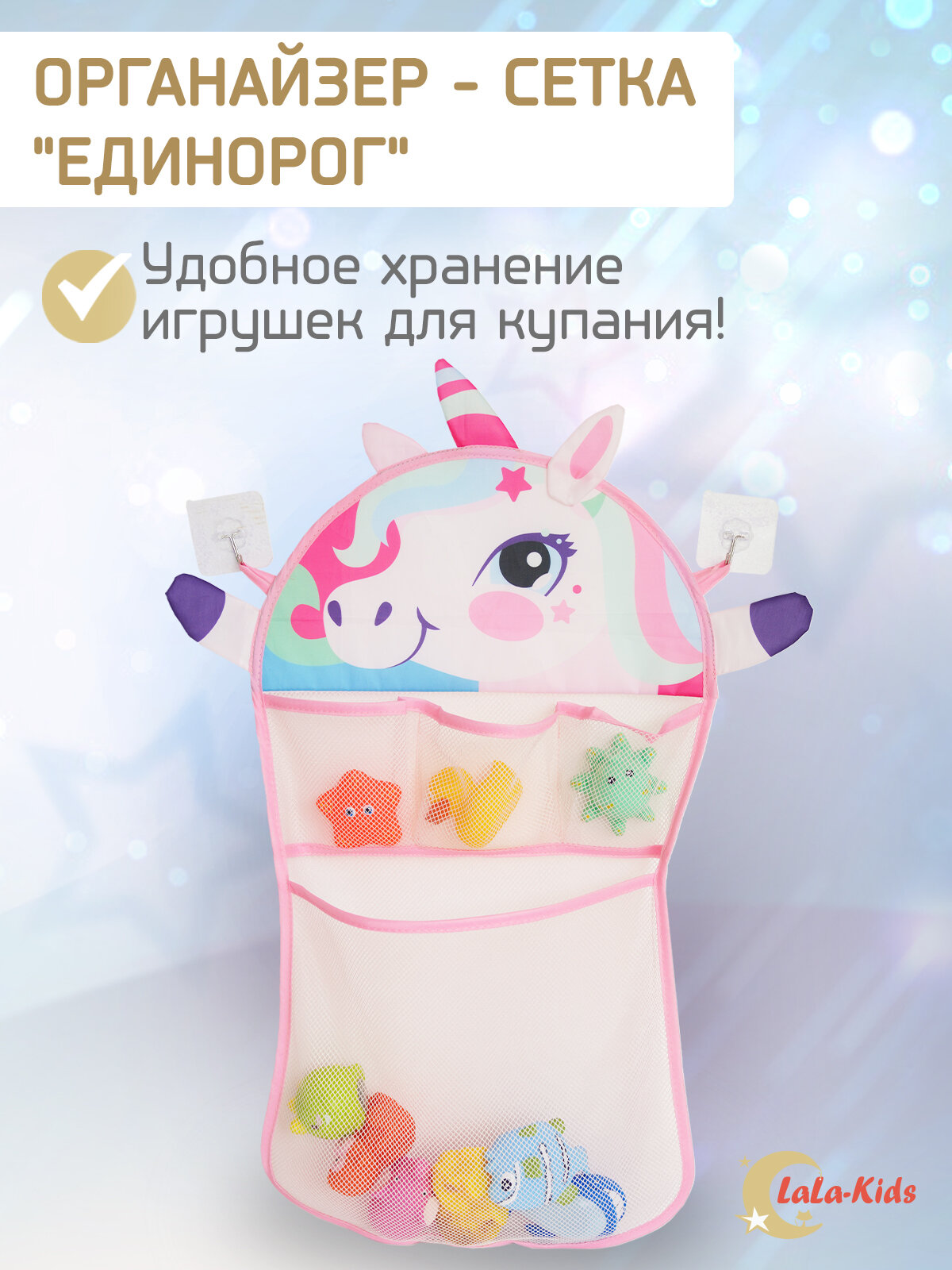 Сетка для игрушек в вaнную "Единорог" LaLa-Kids органайзер розовый