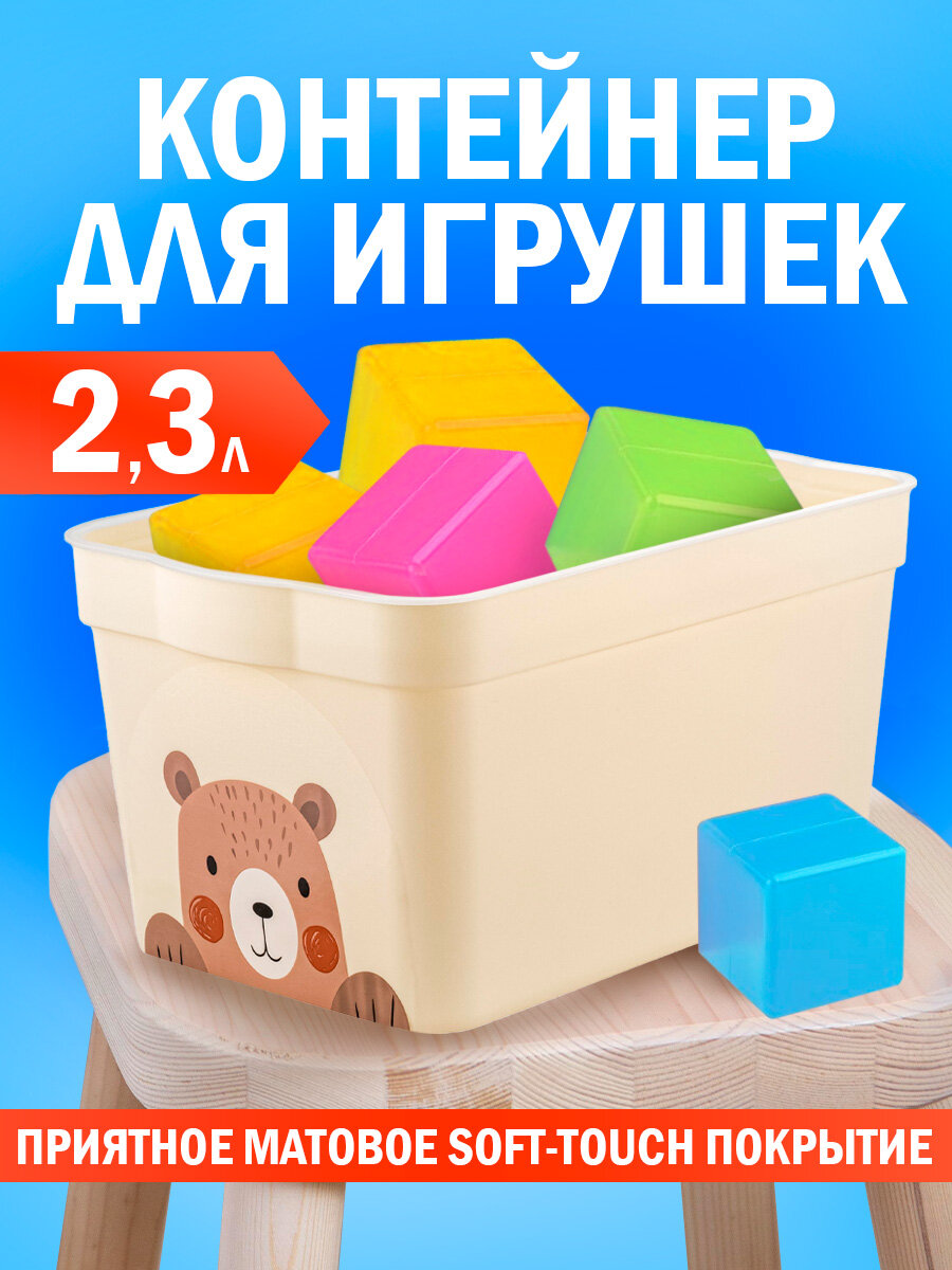 Купить Контейнер для игрушек с крышкой 2,3 л, топленое молоко