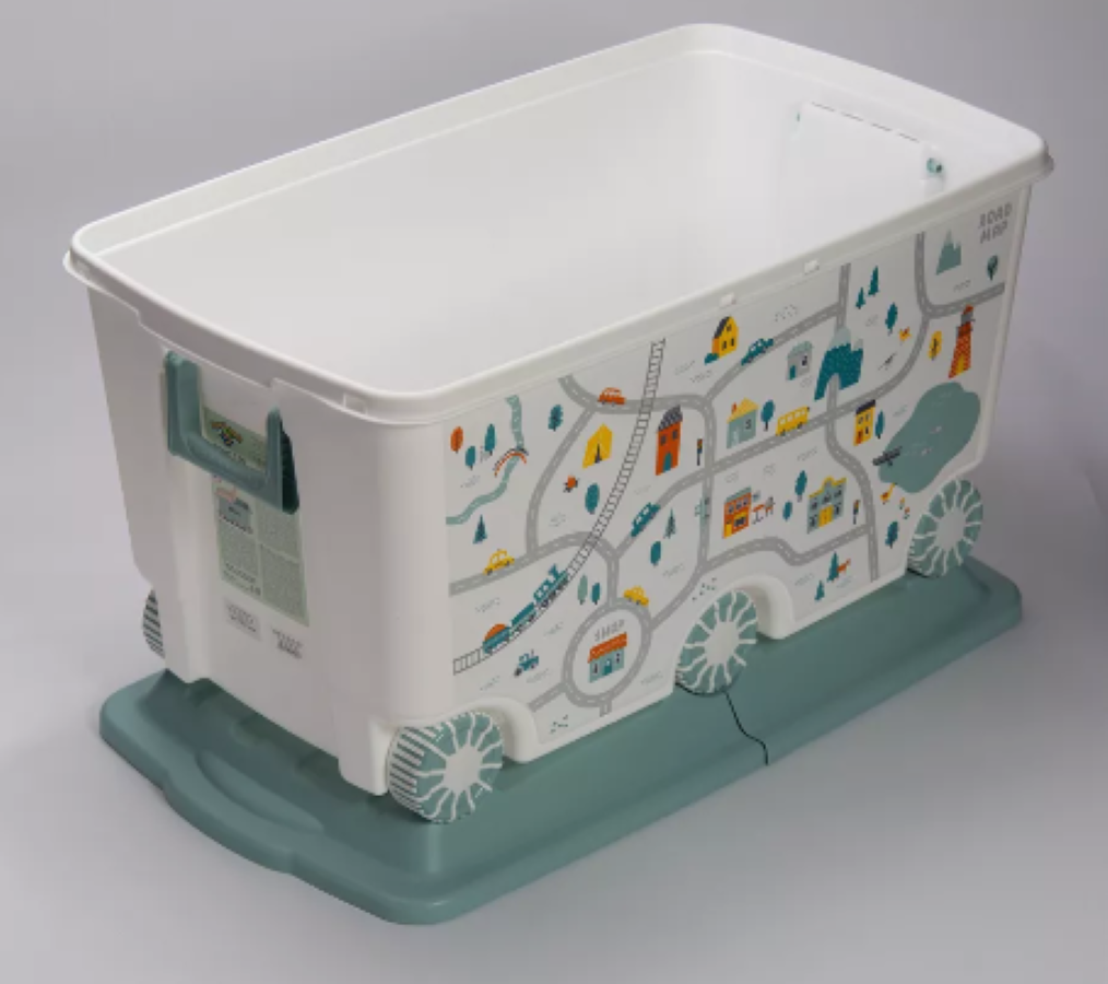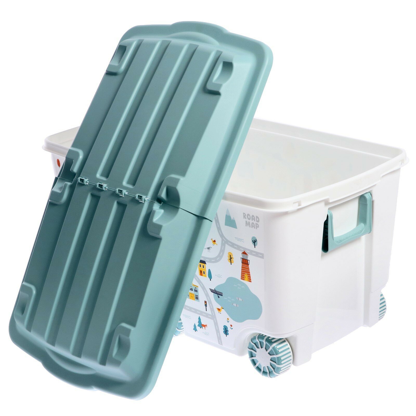 Ящик для игрушек на колесах С декором "путешествие", 66,5Л (светло-голубой) интересное: