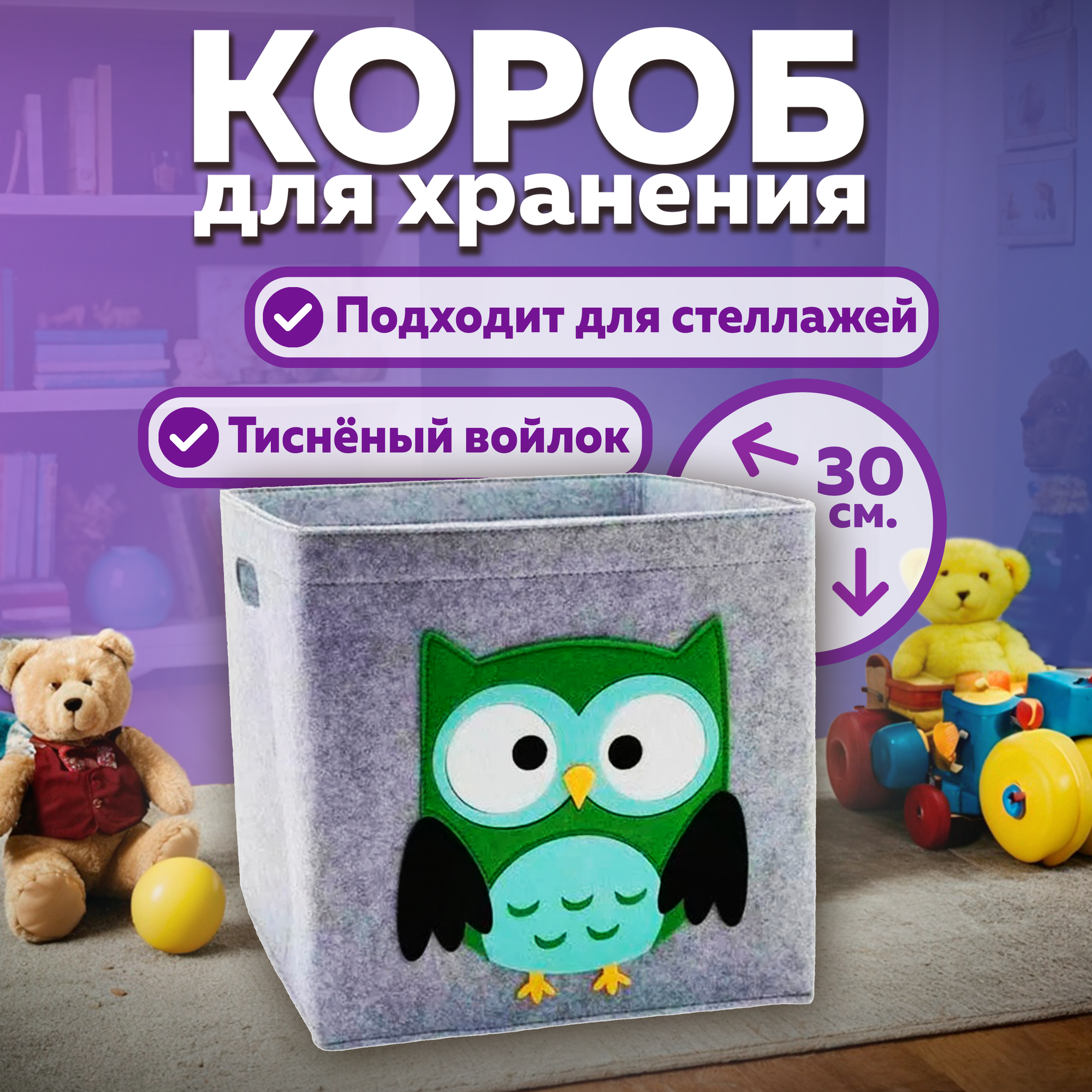 Короб для хранения игрушек войлочный, 30х30 см, корзина в стеллаж, сова интересное: