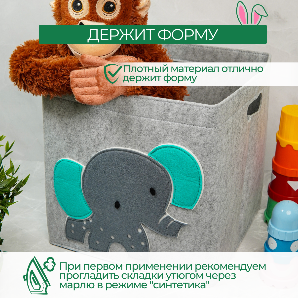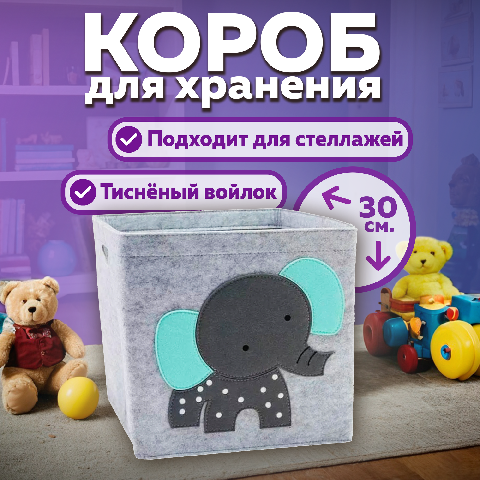 Купить Короб для хранения игрушек войлочный, 30х30 см, корзина в стеллаж, слон