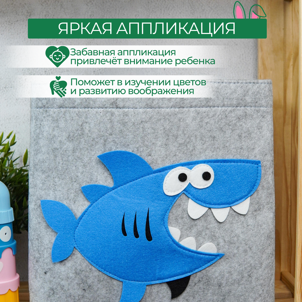 Купить Короб для хранения игрушек войлочный, 30х30 см, корзина в стеллаж, акула