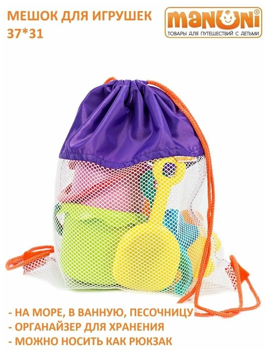 Купить Мешок детский для хранения одежды обуви вещей и игрушек, Сумка сетка в дорогу для детей "Песочница", 32*38 см- Размер M