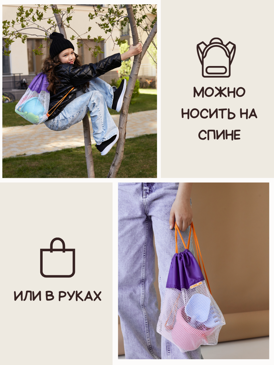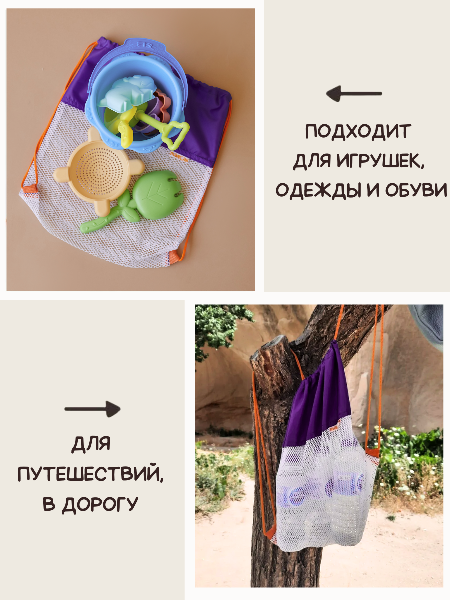 Купить Мешок сетка для хранения одежды обуви вещей и игрушек, Сумка в дорогу для детей 27*32 см- Размер S