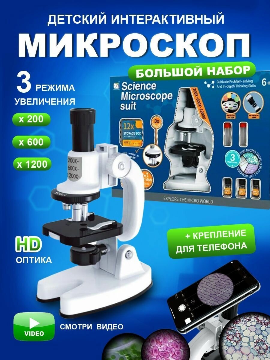 Микроскоп для детей с набором для опытов школьный познавательный интересное: