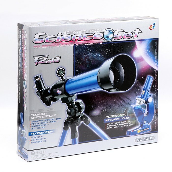 Купить Набор обучающий "Опыт": телескоп настольный , сменные линзы 20х/ 30х/ 40х, микроскоп 100х/ 200х/ 450