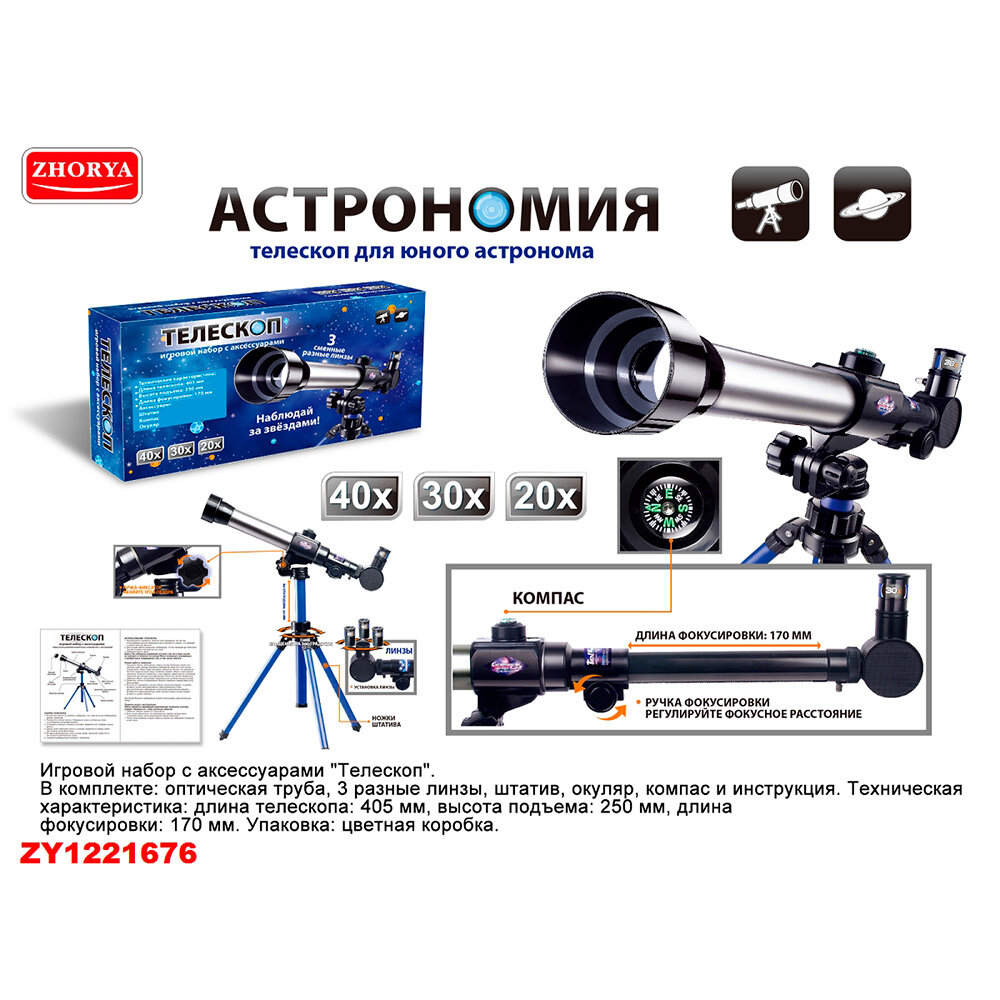 Ниже Вы можете прочитать отзывы на Телескоп детский астрономический со штативом, 3 линзы, увеличение 20х, 30х, 40х, ознакомится с подробными характеристиками, посмотреть интересные обзоры и фотографии на Телескоп детский астрономический со штативом, 3 линзы, увеличение 20х, 30х, 40х.
