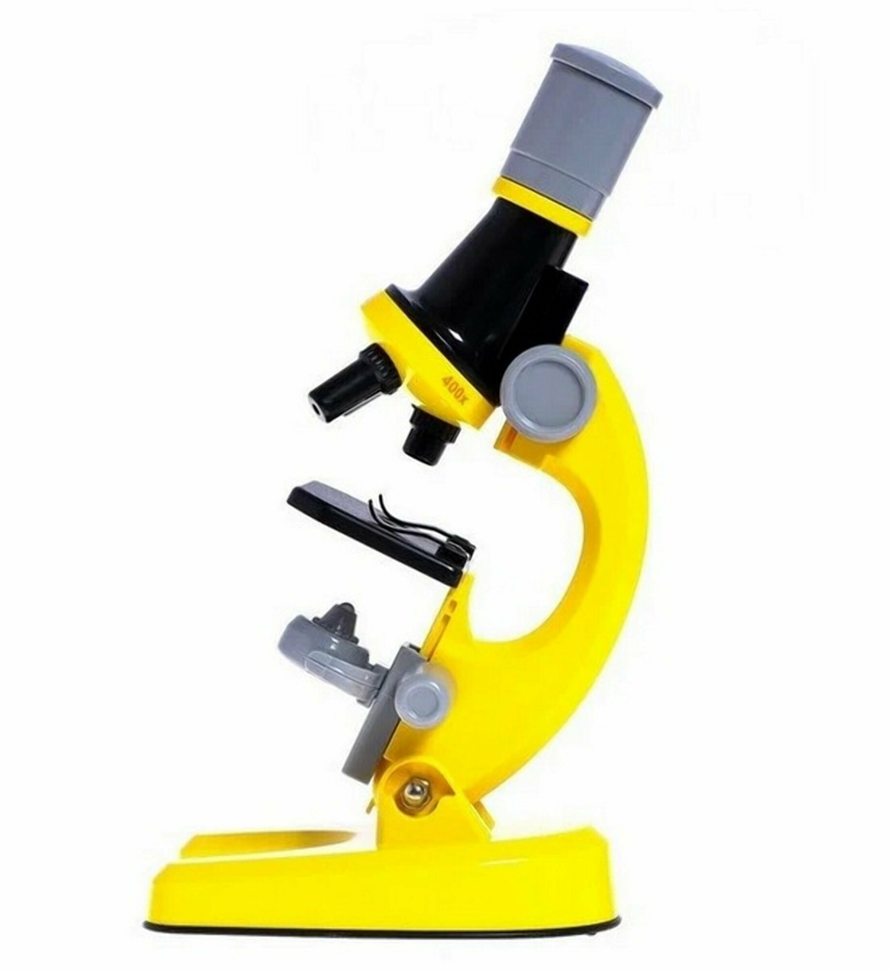Купить Детский Микроскоп Юный ученый с 3 объективами: 100х, 400х, 1200х, подсветка, цвет белый / Набор для опытов / Подарок