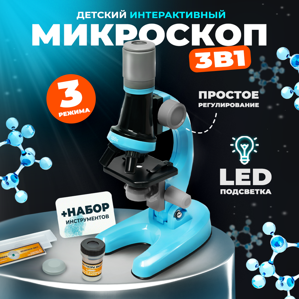 Детский микроскоп Solmax, набор для опытов, голубой интересное: