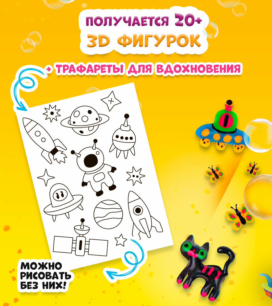 | Комплектация | гель краски для создания 3Д фигурок - 23; аквариум для хранения фигурок - 1 шт; волшебный порошок - 2 упаковки; гидрогель - 2 упаковки; трафареты для рисования - 3 шт; инструкция - 1 шт; стикеры для детей - 1 шт; пленка для рисования аквагель красками - 2 шт |