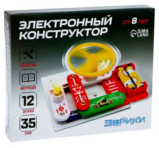 | Комплектация | Конструктор электронный , 35 схем, 12 элементов, работает от батареек |
