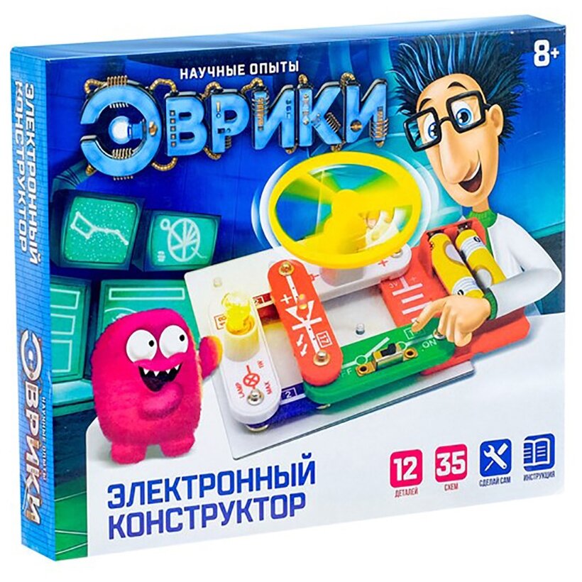 Купить Конструктор электронный «Эврики», 35 схем, 12 элементов, работает от батареек
