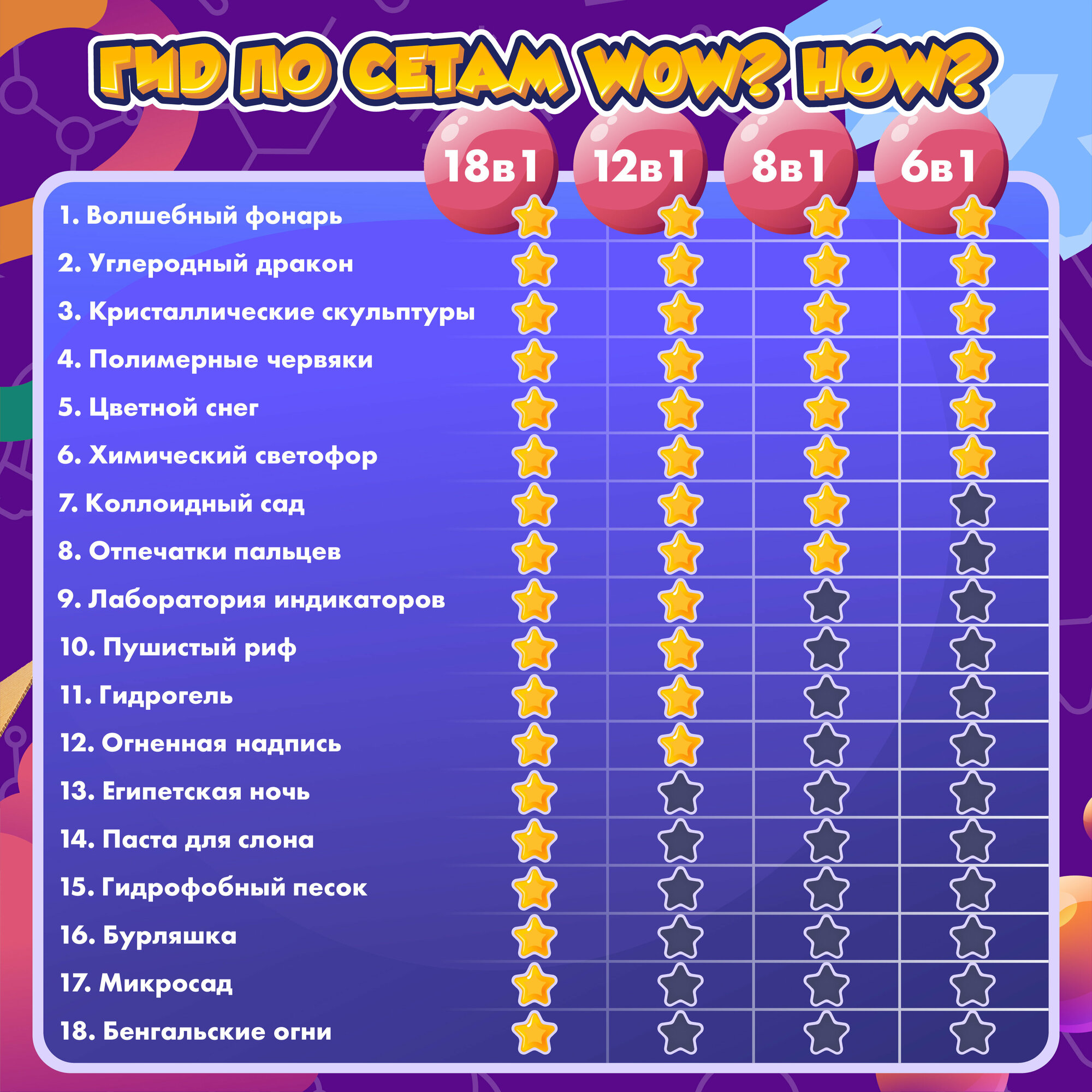 Большой развивающий набор для опытов из 18 химических экспериментов для детей WOW! HOW? Подарок для девочки, мальчика от 6 лет и 8 лет. Юный химик