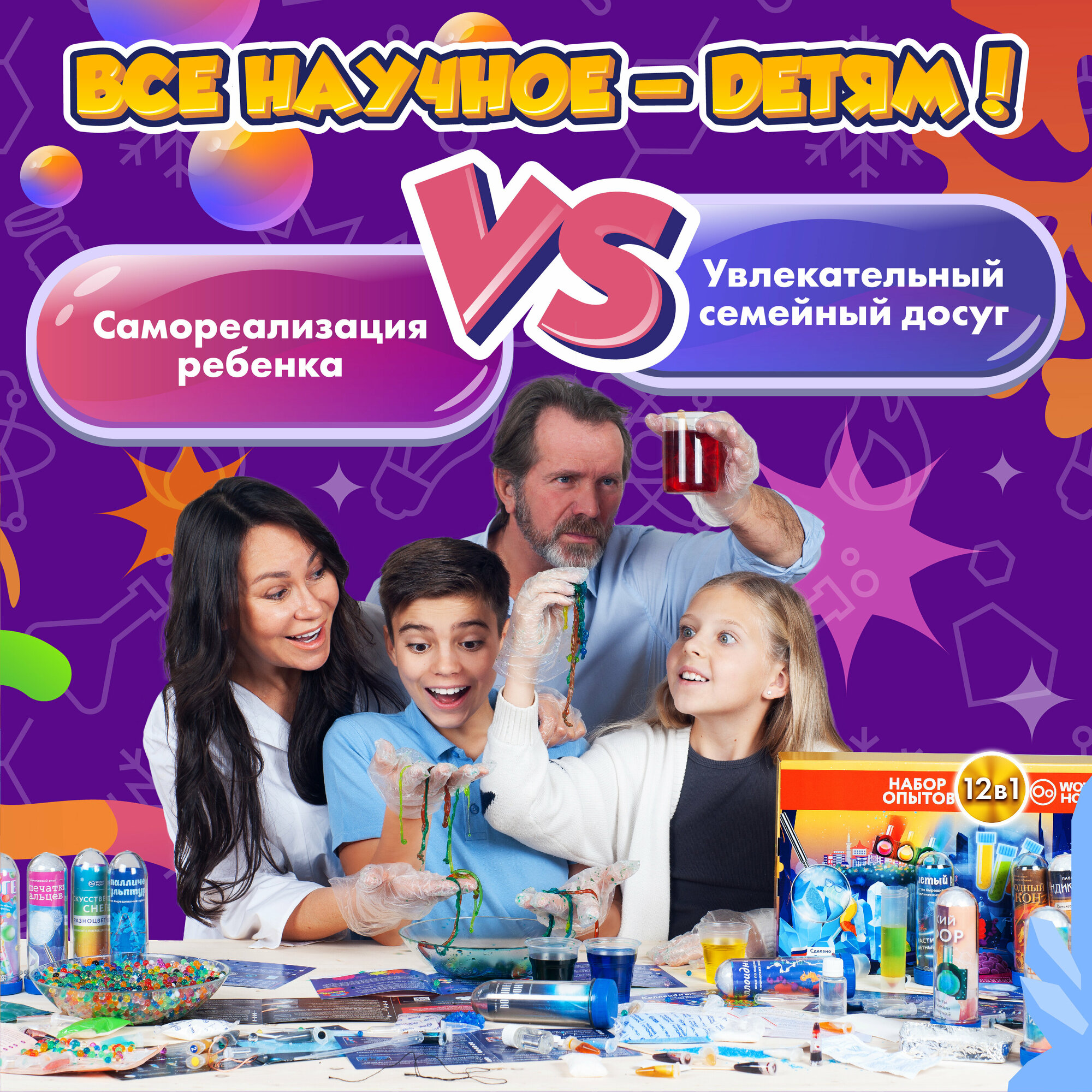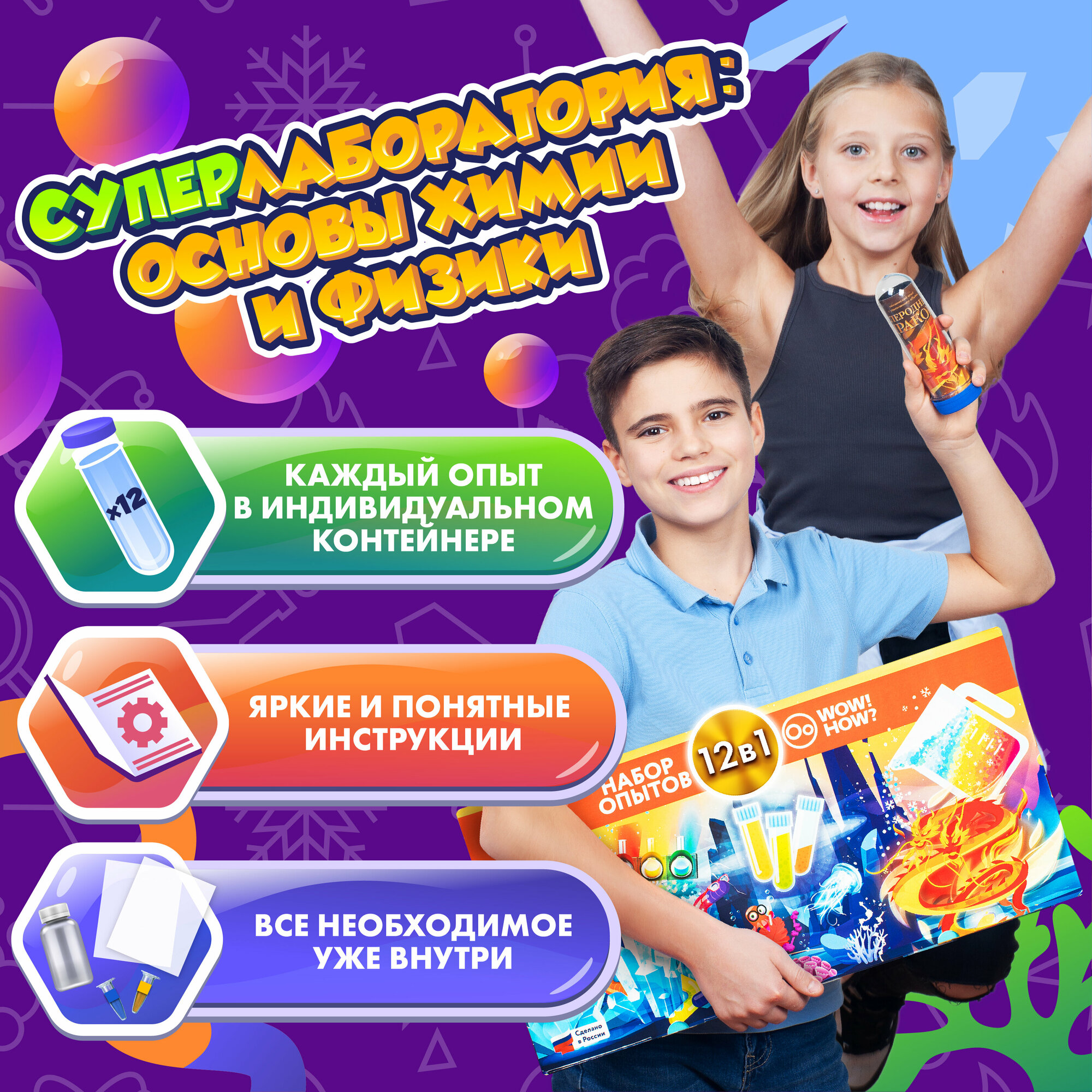 Купить Большой развивающий набор для экспериментов из 12 химических опытов для детей WOW! HOW? Подарок для девочки, мальчика от 6 лет и 8 лет. Юный химик