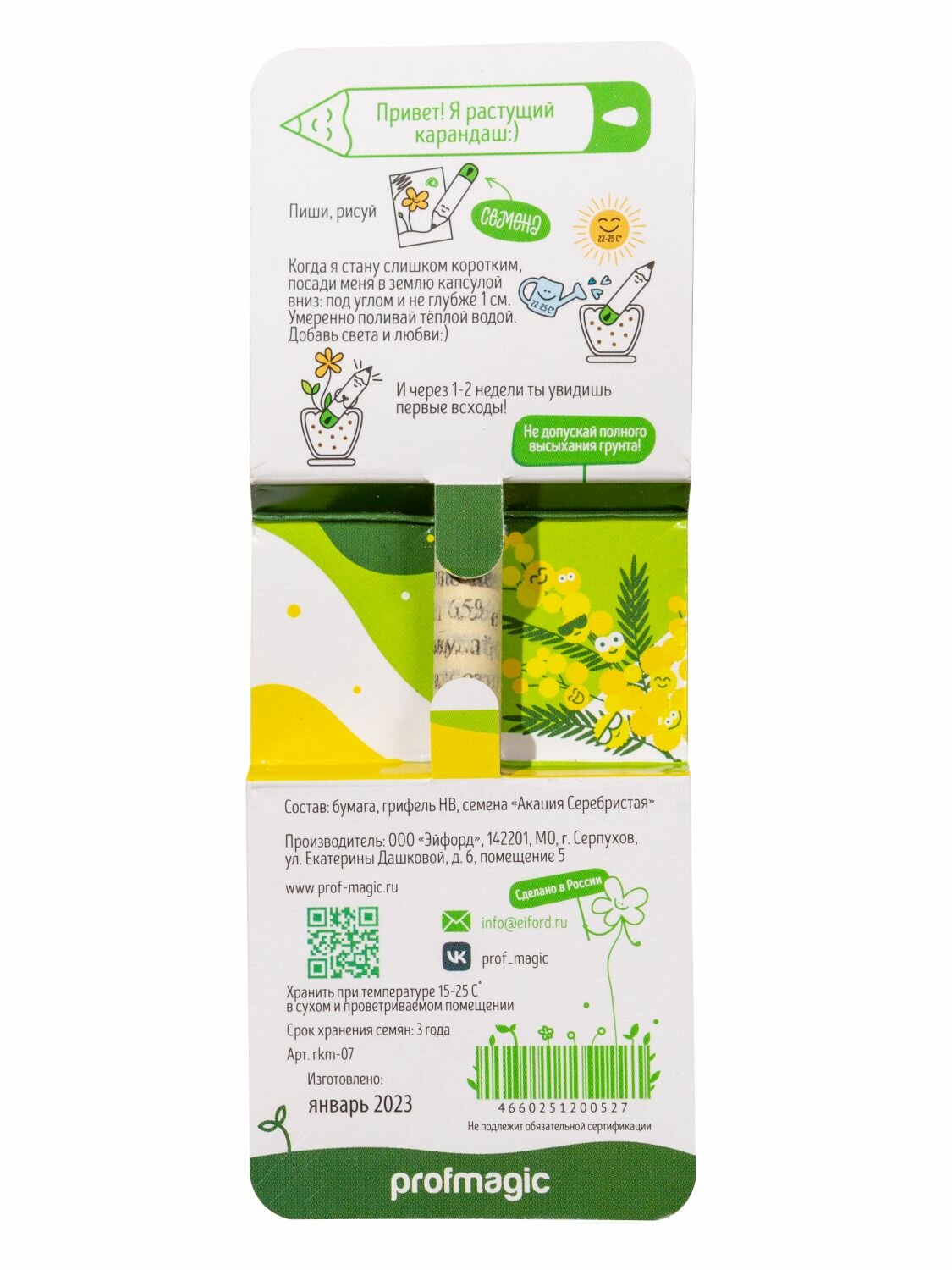 «Растущий карандаш» mini с семенами акации серебристой