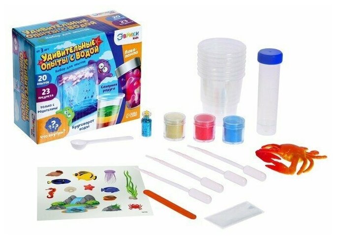 Купить Детский набор для экспериментов "Удивительные опыты с водой", 23 предмета, 20 опытов, юный химик