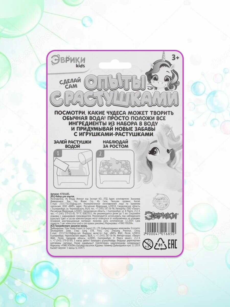 Набор Эврики "Опыты с растушками", развивающий, растущие в воде игрушки, 4 вида