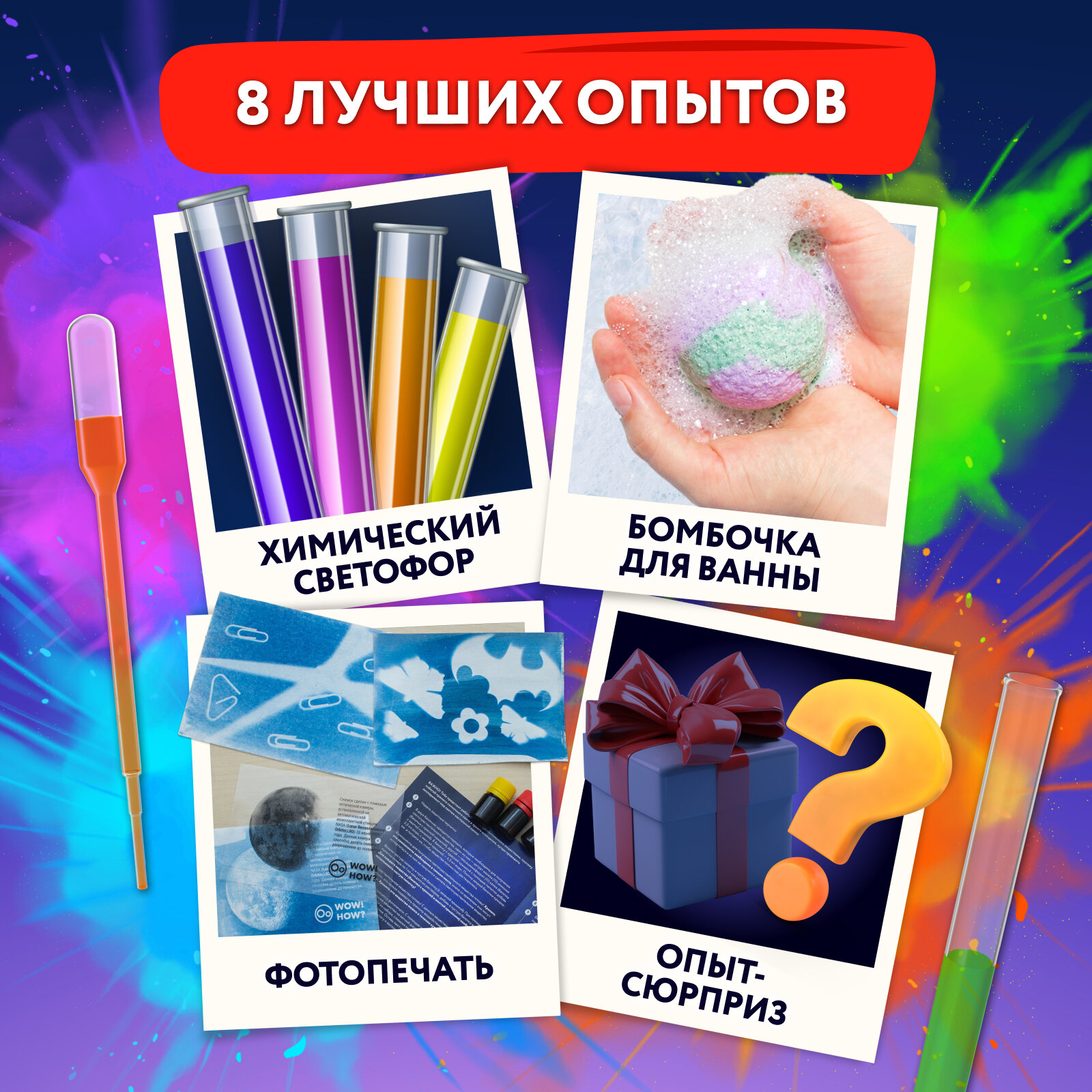 Купить Большой развивающий набор для опытов из 8 химических экспериментов для детей WOW! HOW? Подарок для девочки, мальчика от 6 лет и 8 лет. Юный химик