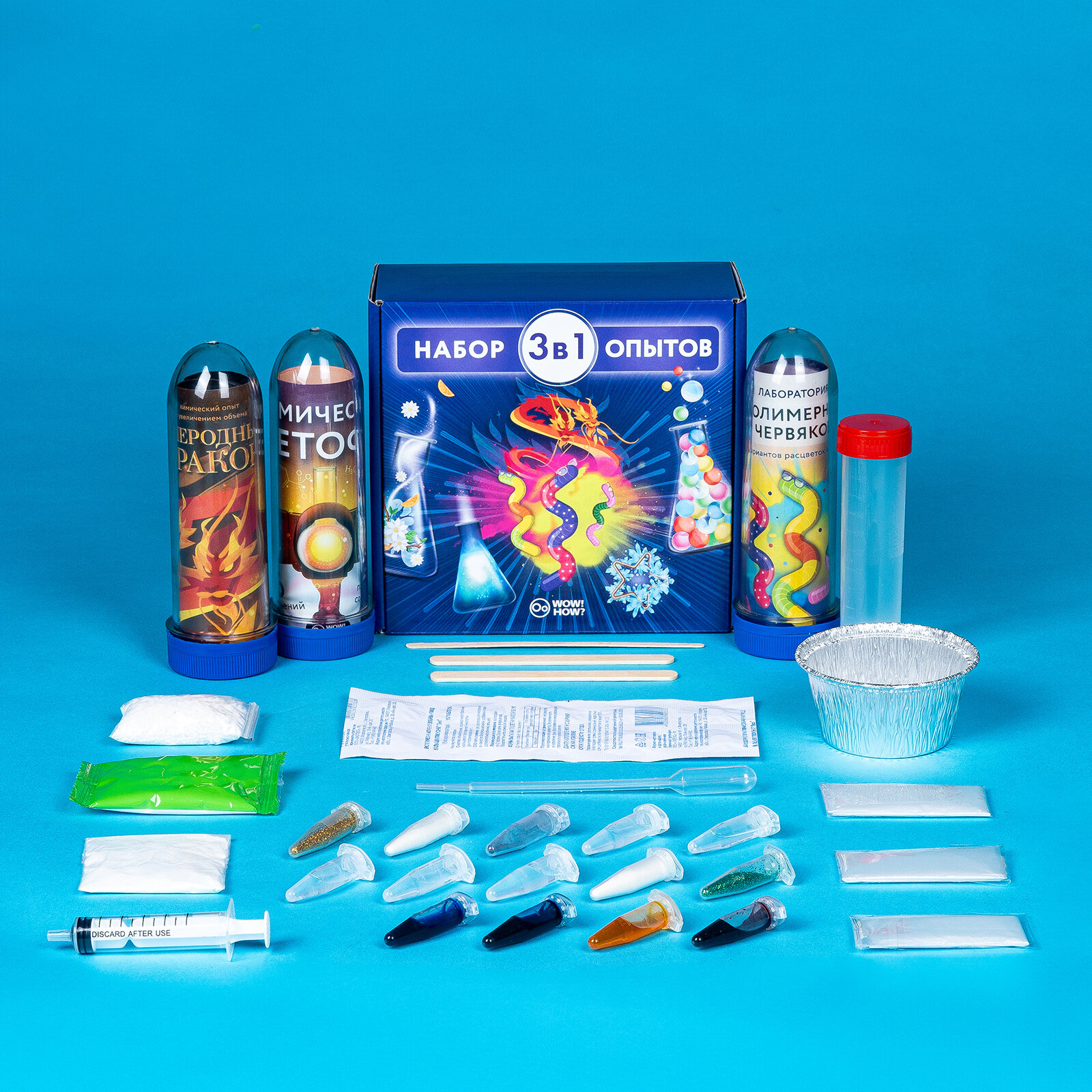 Купить Набор для опытов из 3 химических экспериментов для детей WOW! HOW? Сет №2. Подарок для девочки, мальчика от 6 лет и 8 лет. Юный химик