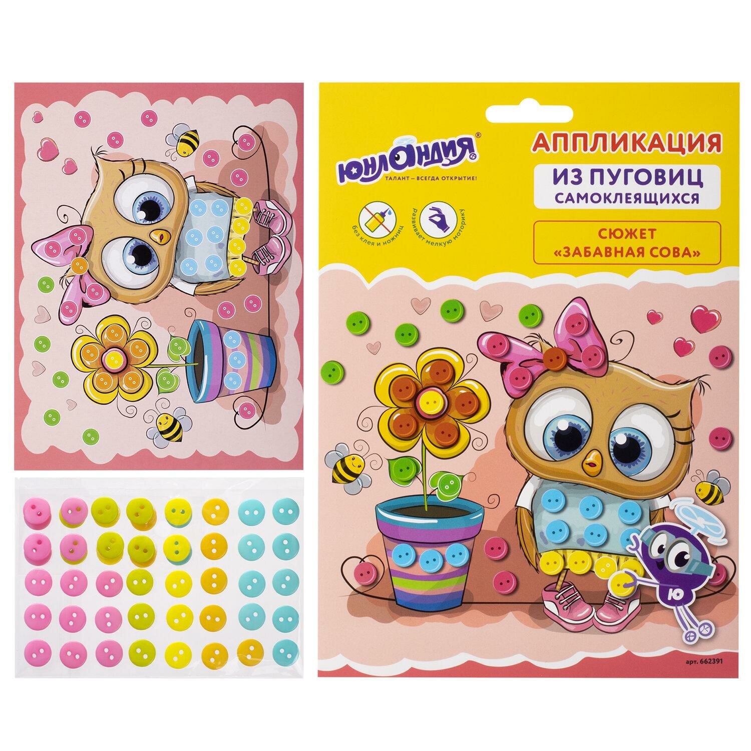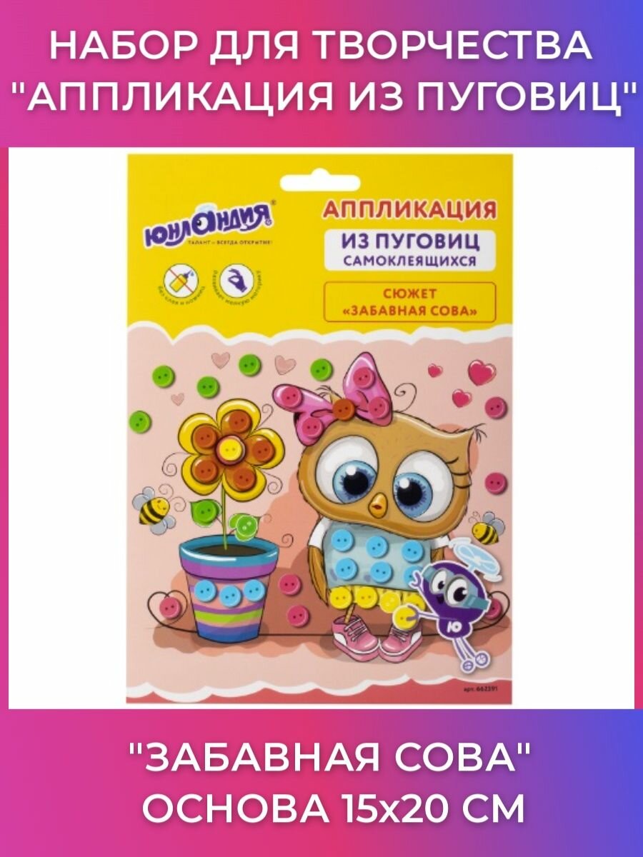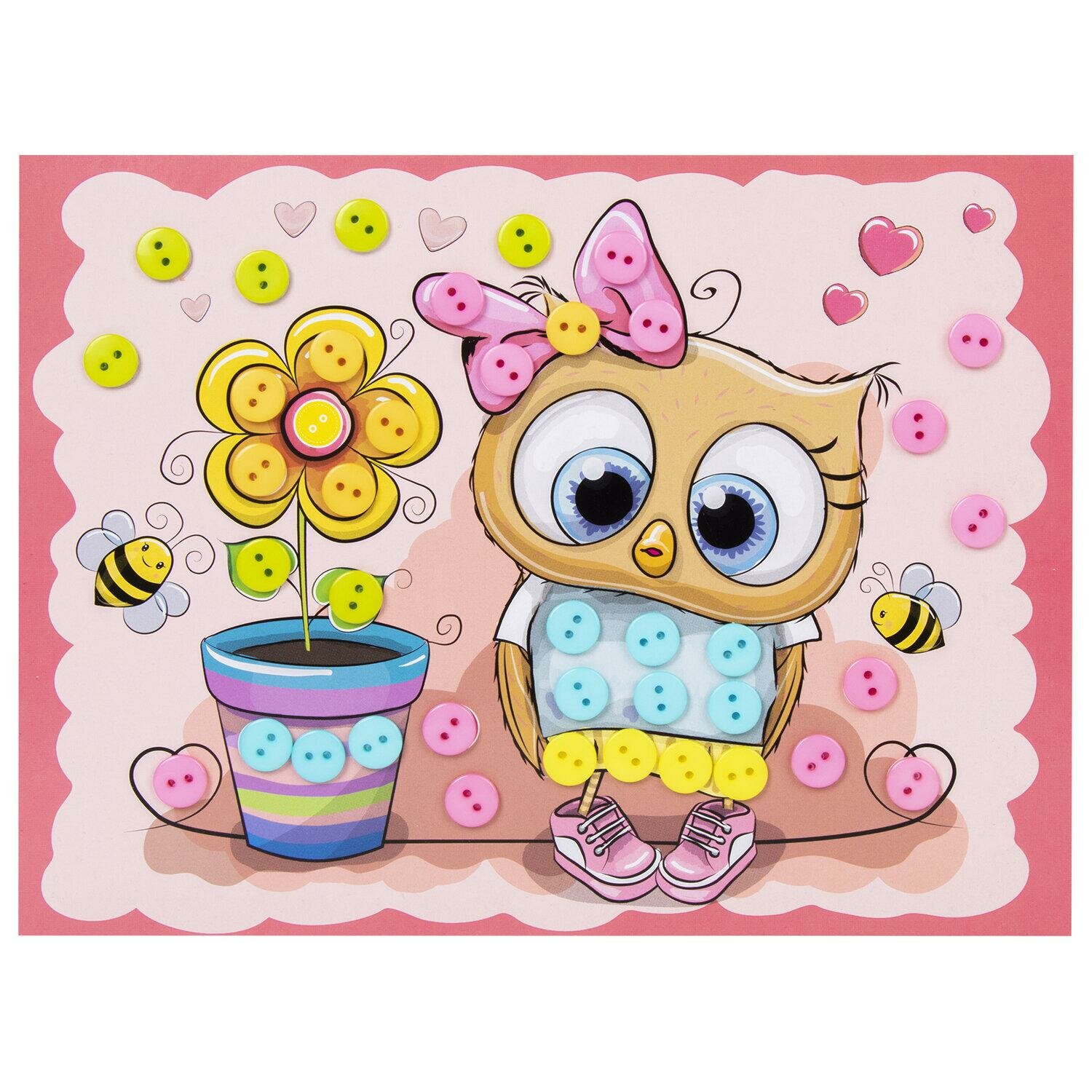 Набор для творчества "Аппликация из пуговиц", "Забавная сова", основа 20*15 см, юнландия, 662391, 1 шт интересное: