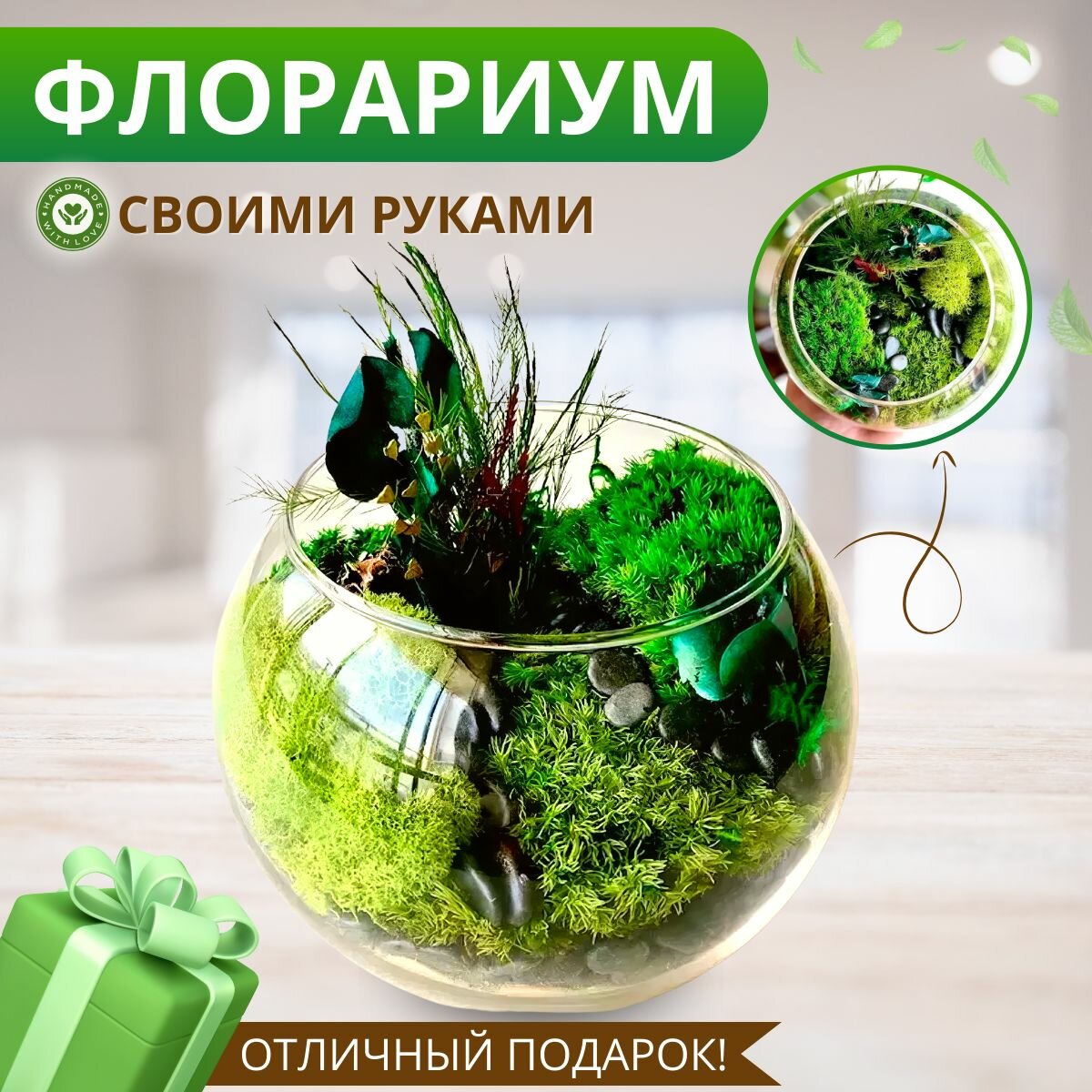 Флорариум своими руками пластиковый с мхом, террариум для декора и дома, набор для творчества собери сам без живых цветов интересное: