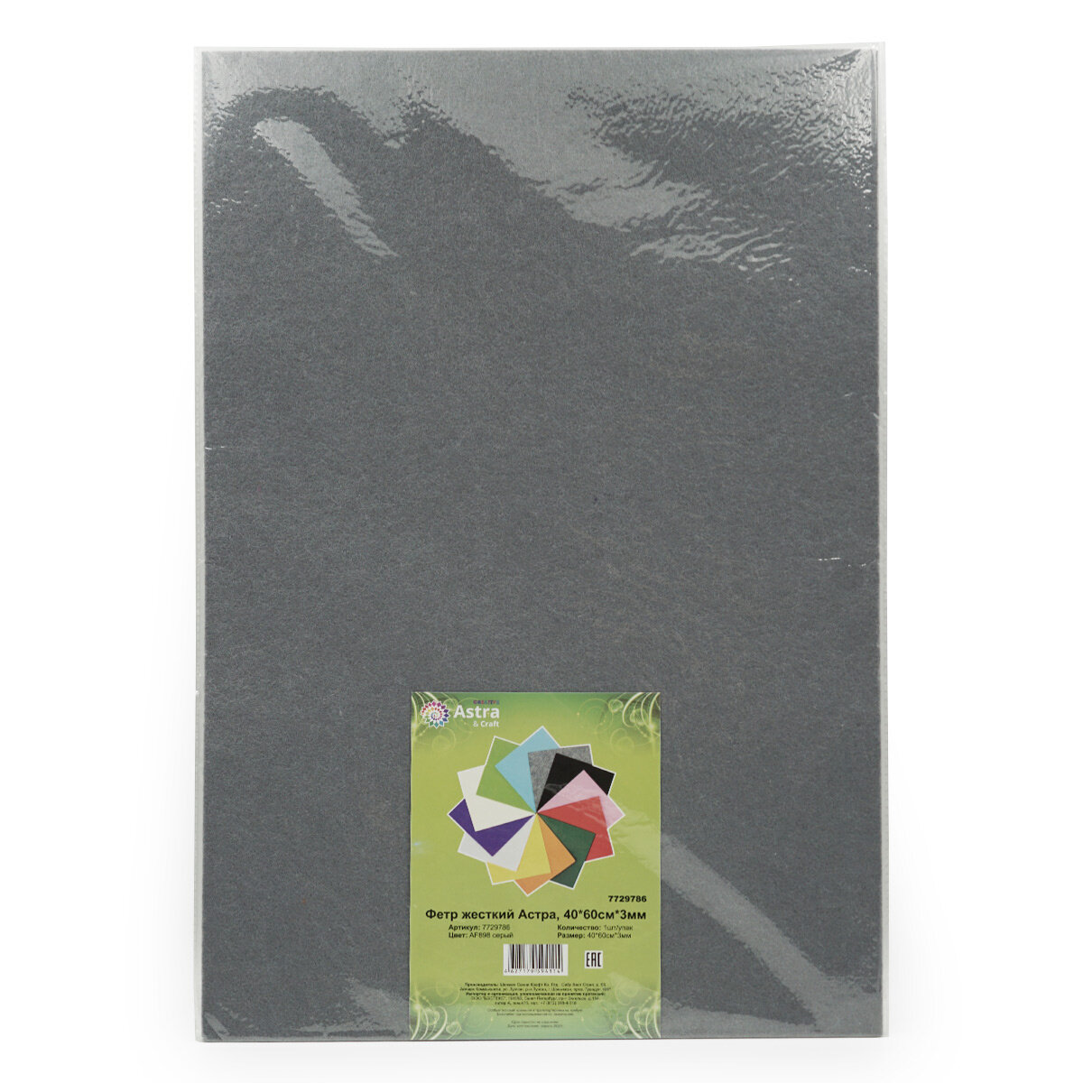 Фетр жесткий листовой Astra&Craft, 3 мм, 40х60 см (AF898 серый)