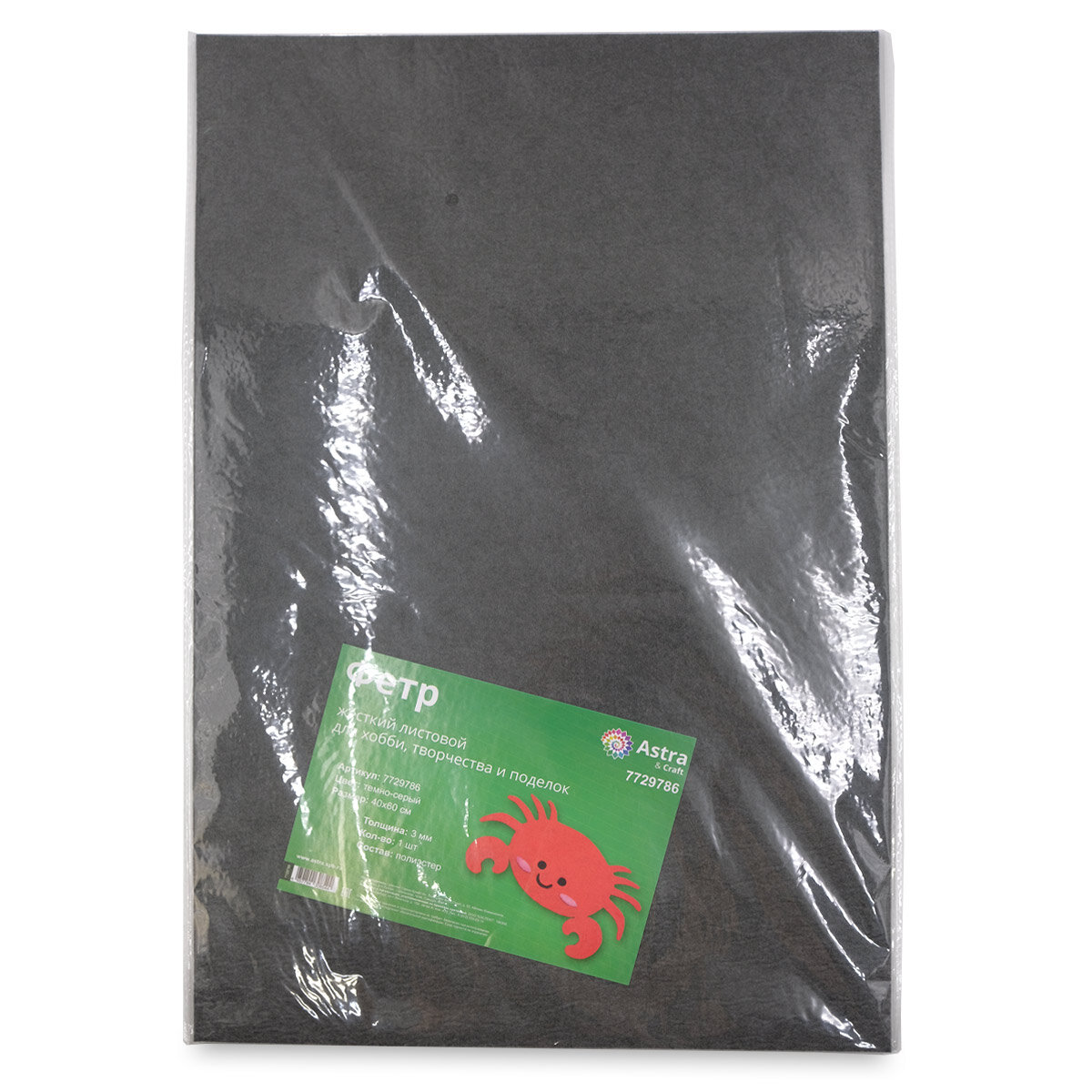 Фетр жесткий листовой Astra&Craft, 3 мм, 40х60 см (AF870 черный)