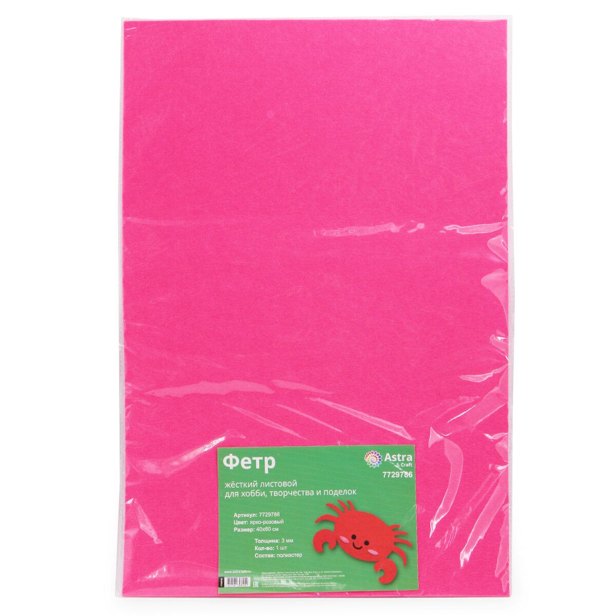 Купить Фетр жесткий листовой Astra&Craft, 3 мм, 40х60 см (AF814 ярко-розовый)