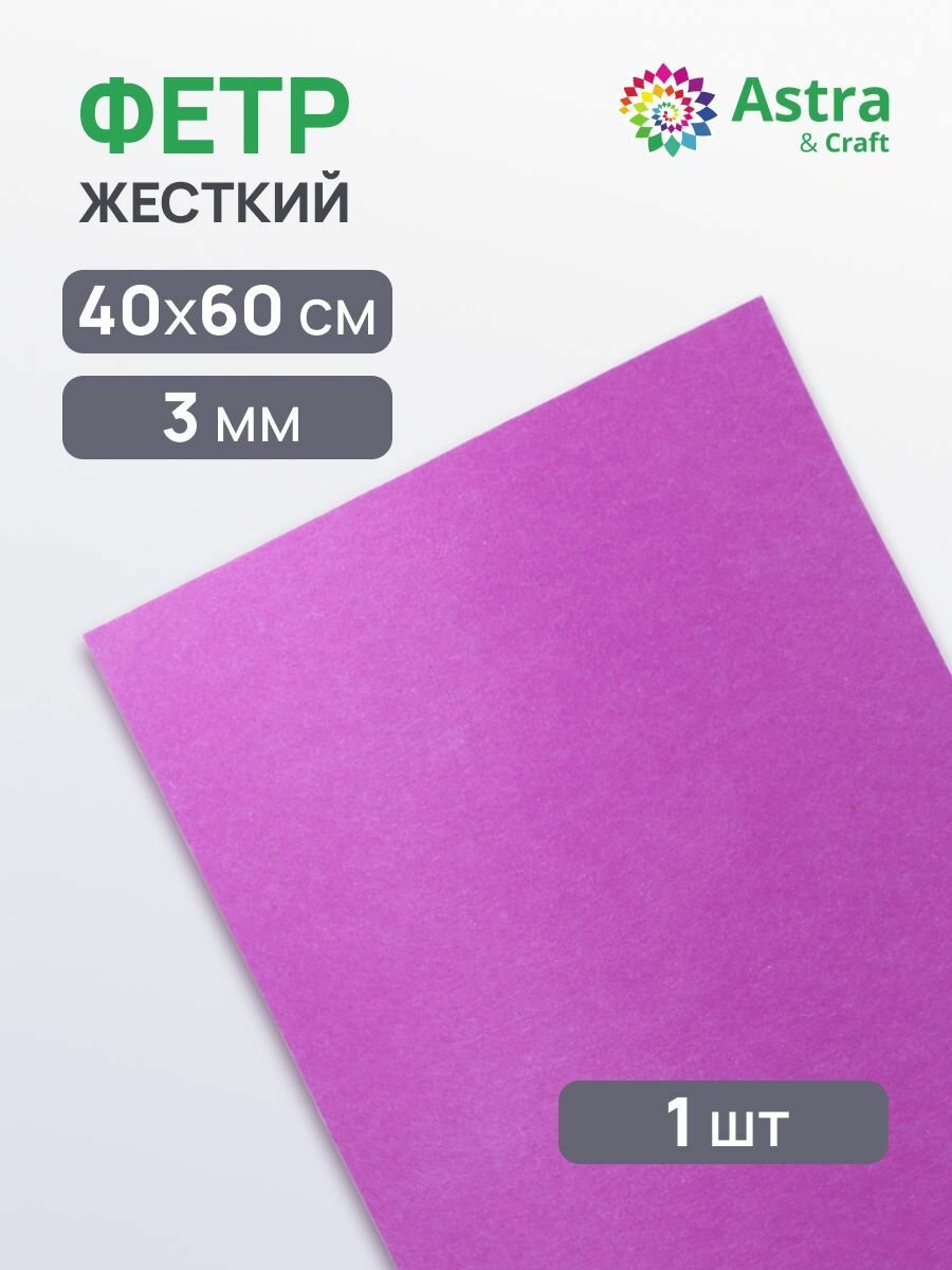 Фетр Astra&Craft Листовой, жесткий, 3 мм, 40х60 см, цвет AF874, фиолетовый
