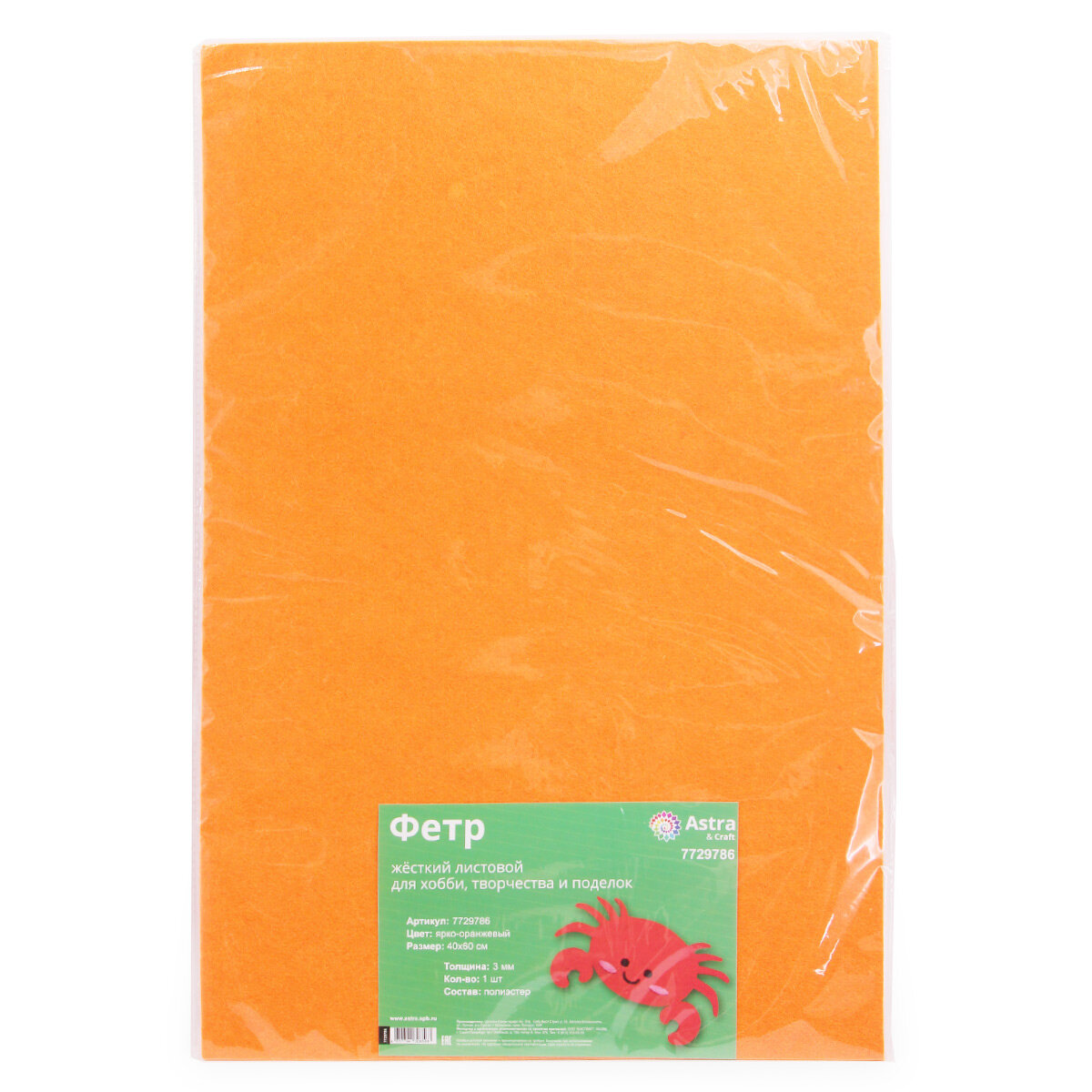 Купить Фетр жесткий листовой Astra&Craft, 3 мм, 40х60 см (AF904 ярко-оранжевый)